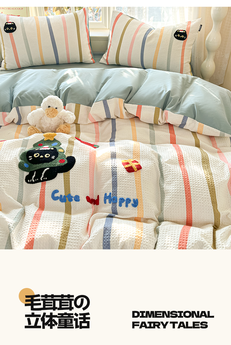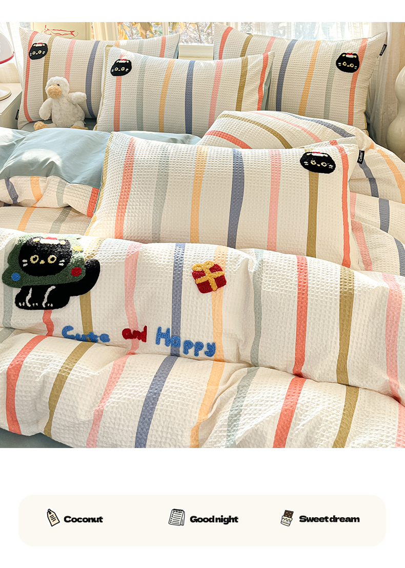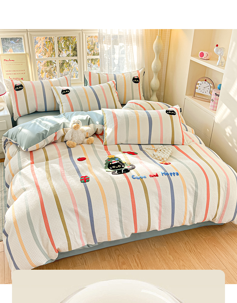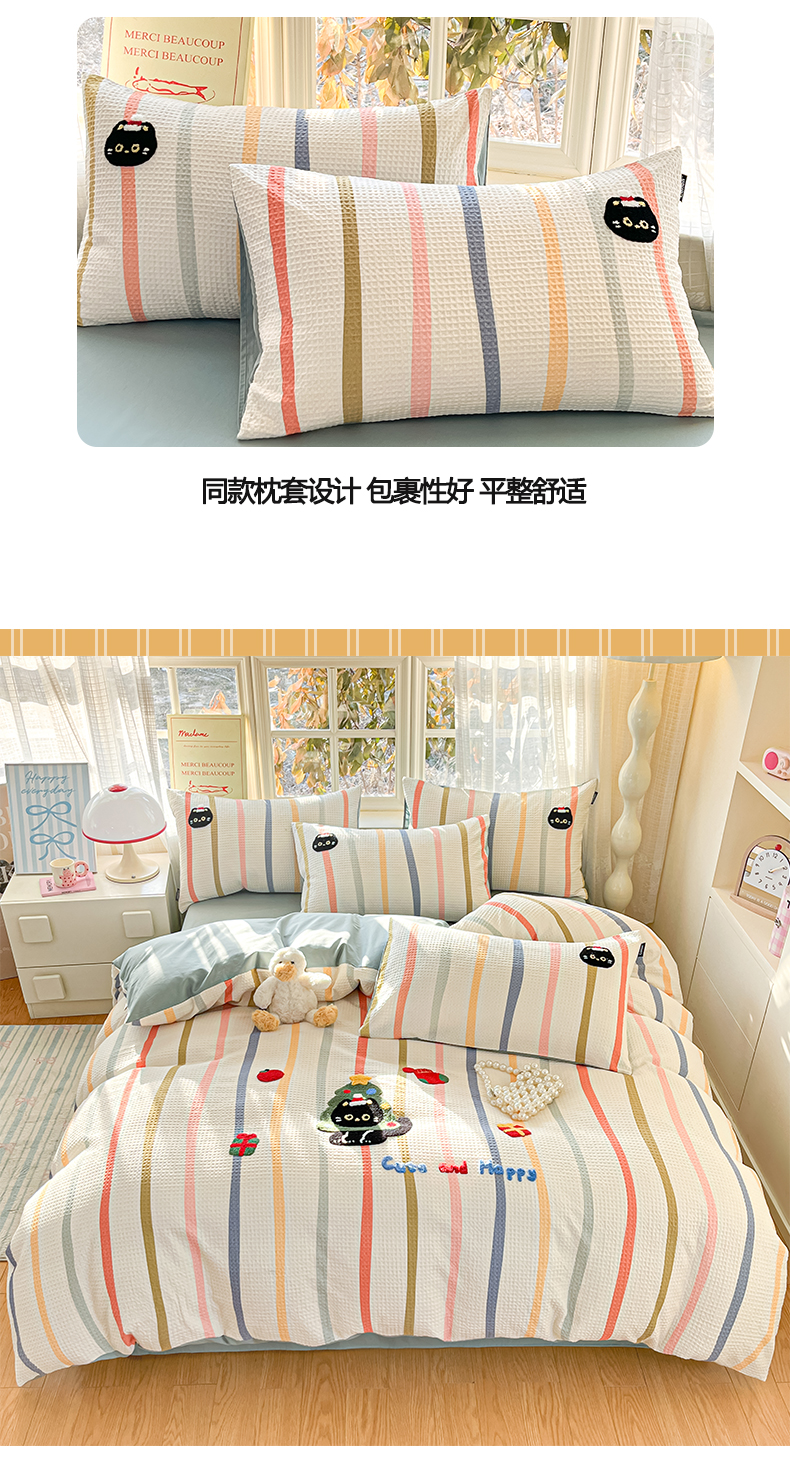 商品名称:涵宸家纺 2026新款全棉提花华夫格四件套 拾陌