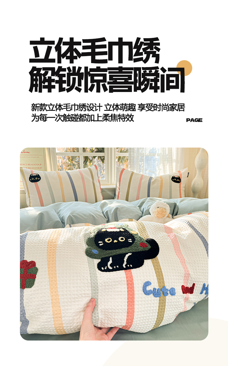 涵宸家纺 2026新款全棉提花华夫格四件套 拾陌