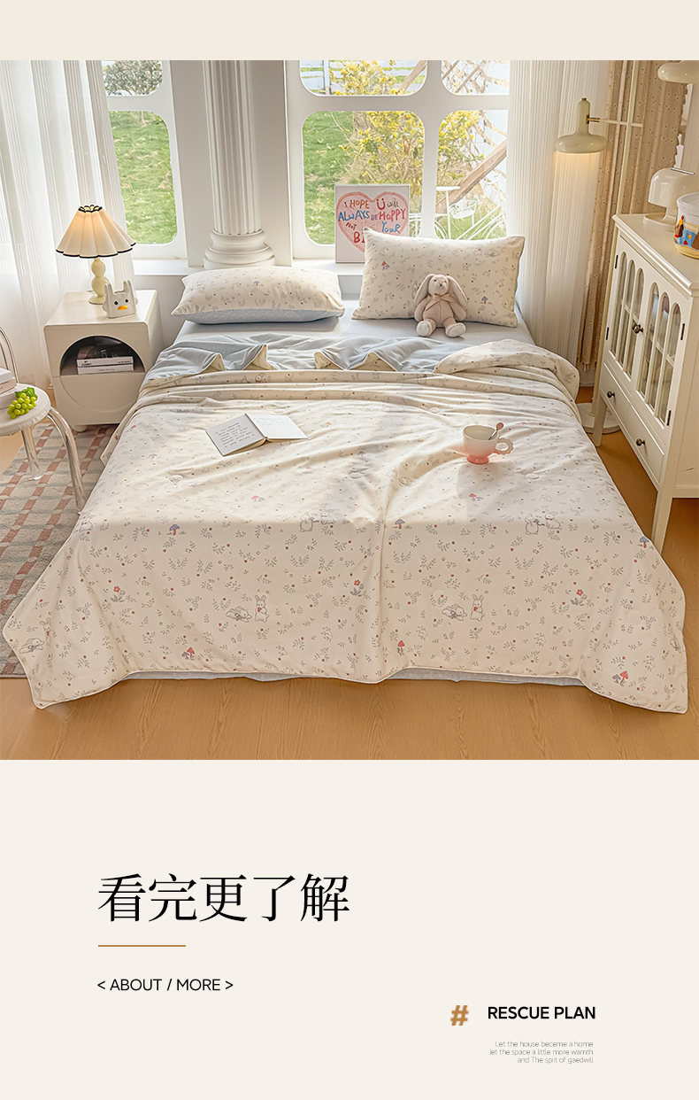 • 91家纺网 家纺一手货源 找家纺 金喜 2026新款100%里外全棉夏被夏被四件套 觅时光-兰
