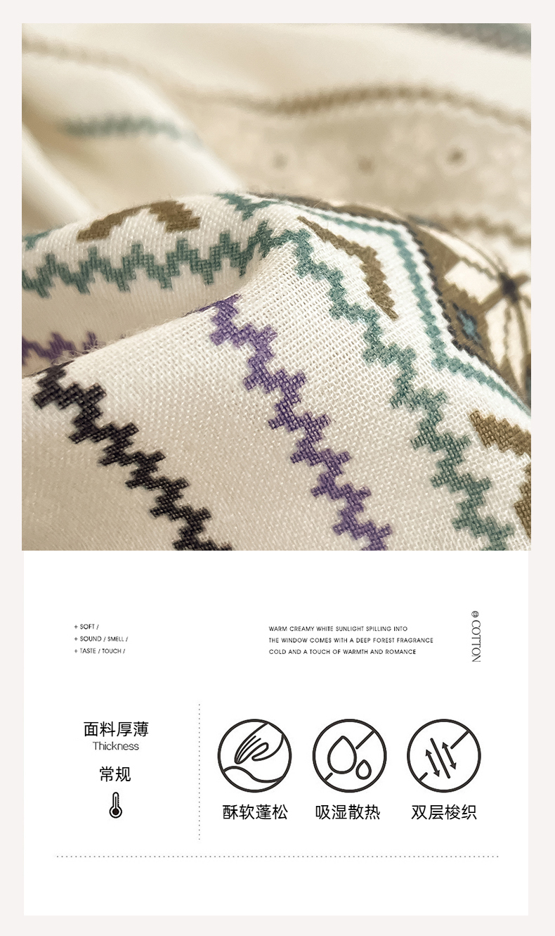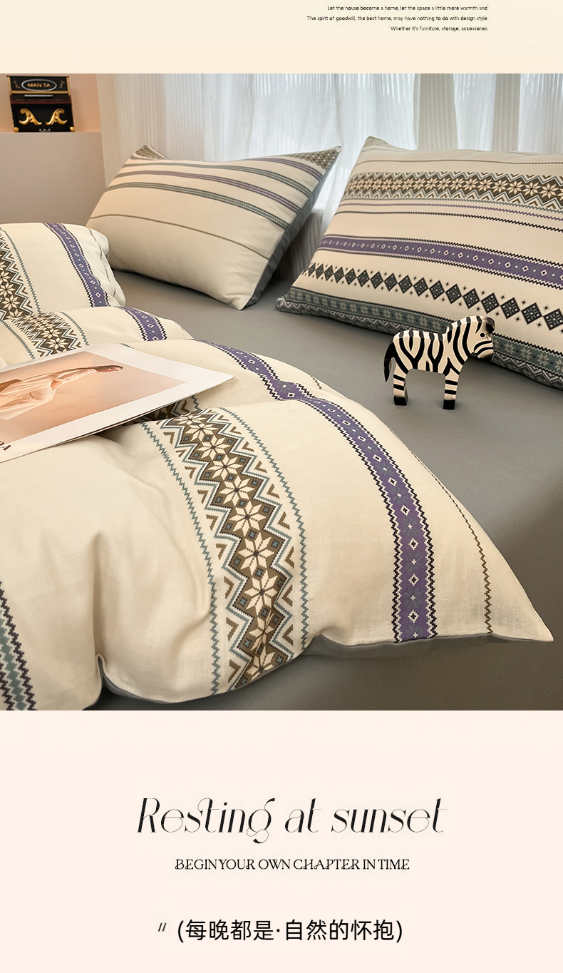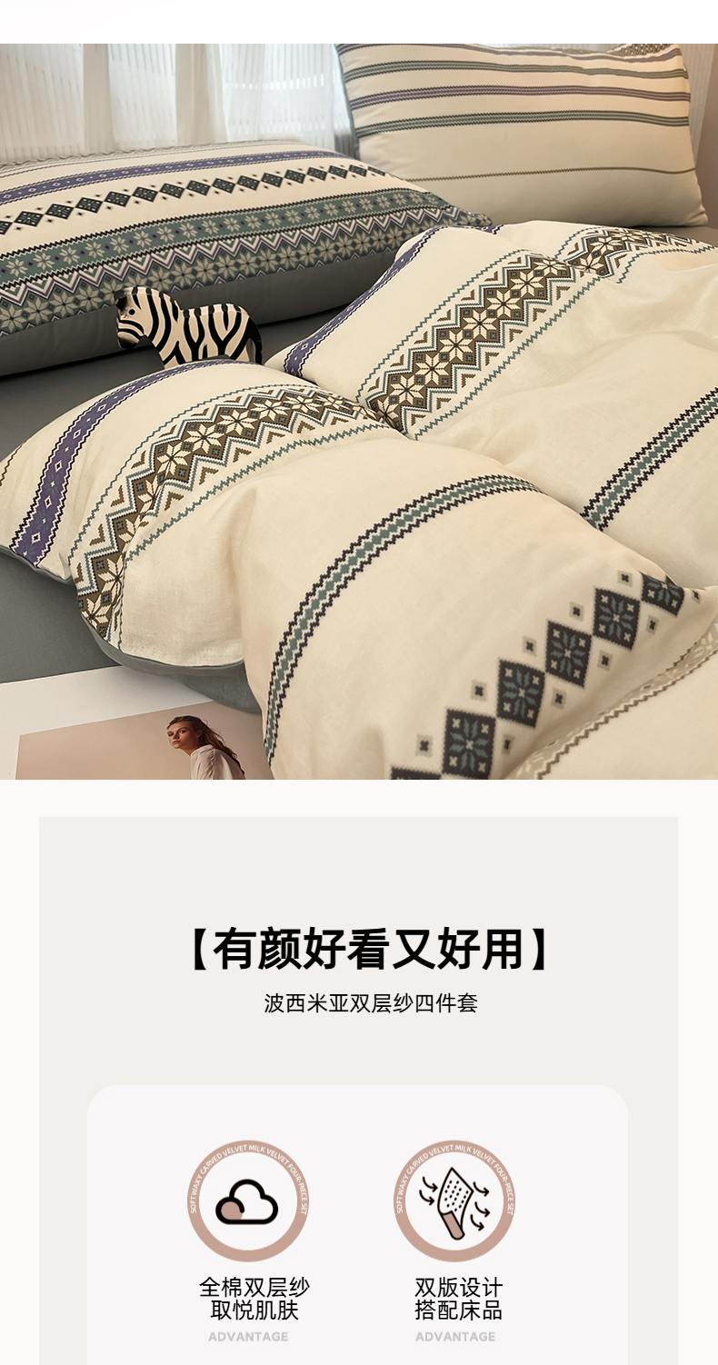 当前位置: 91家纺网 > 商品网购 > 床品套件 > 四件套 > 全棉普通四件套 > 禾时 2026新款A类波西米亚全棉纯棉双层纱四件套 波格利特