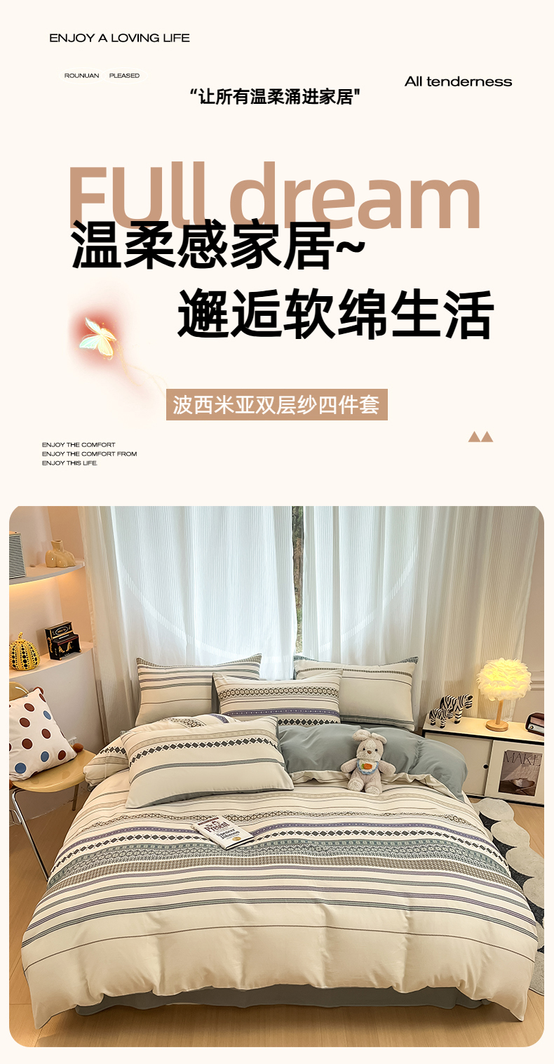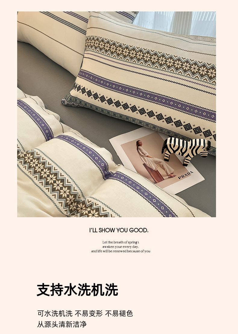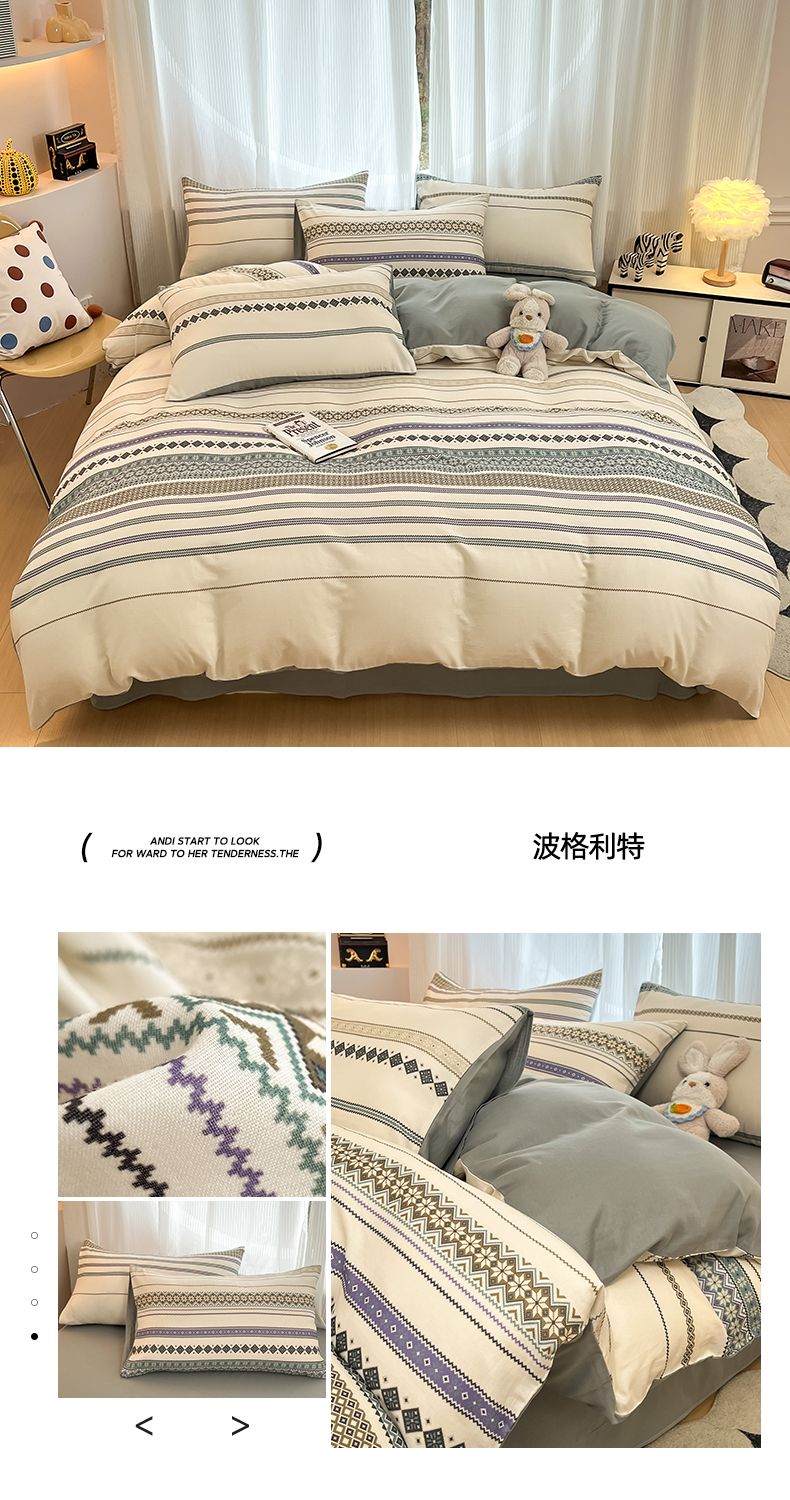 当前位置: 91家纺网 > 商品网购 > 床品套件 > 四件套 > 全棉普通四件套 > 禾时 2026新款A类波西米亚全棉纯棉双层纱四件套 波格利特