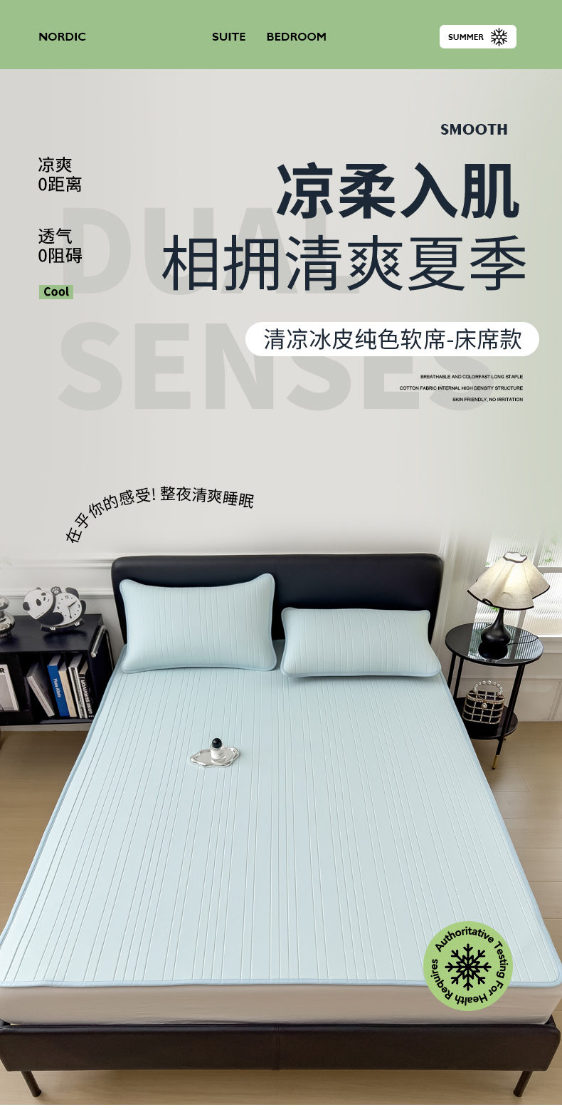 (总)丝羽坊 2026新款云朵凉感纯色小冰皮软凉席-床笠款,浅粉,浅灰,浅紫,清新绿,深睡蓝,天蓝,甜心蓝