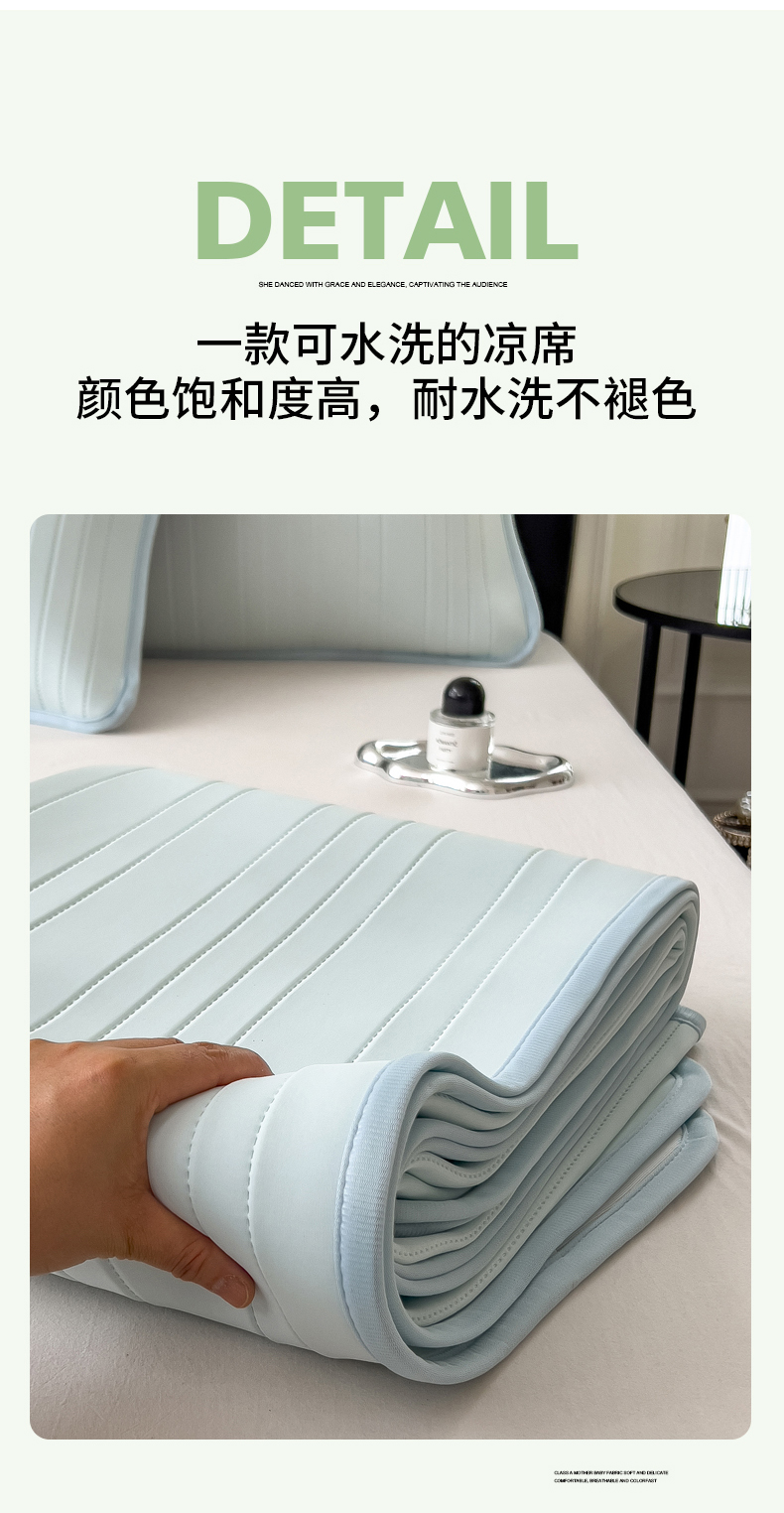 商品名称:丝羽坊 2026新款云朵凉感纯色小冰皮软凉席-平铺款 甜心蓝