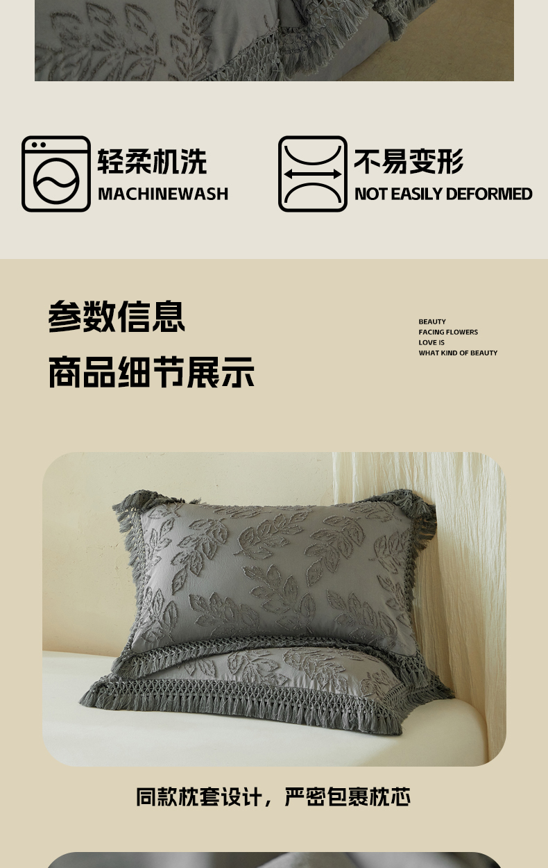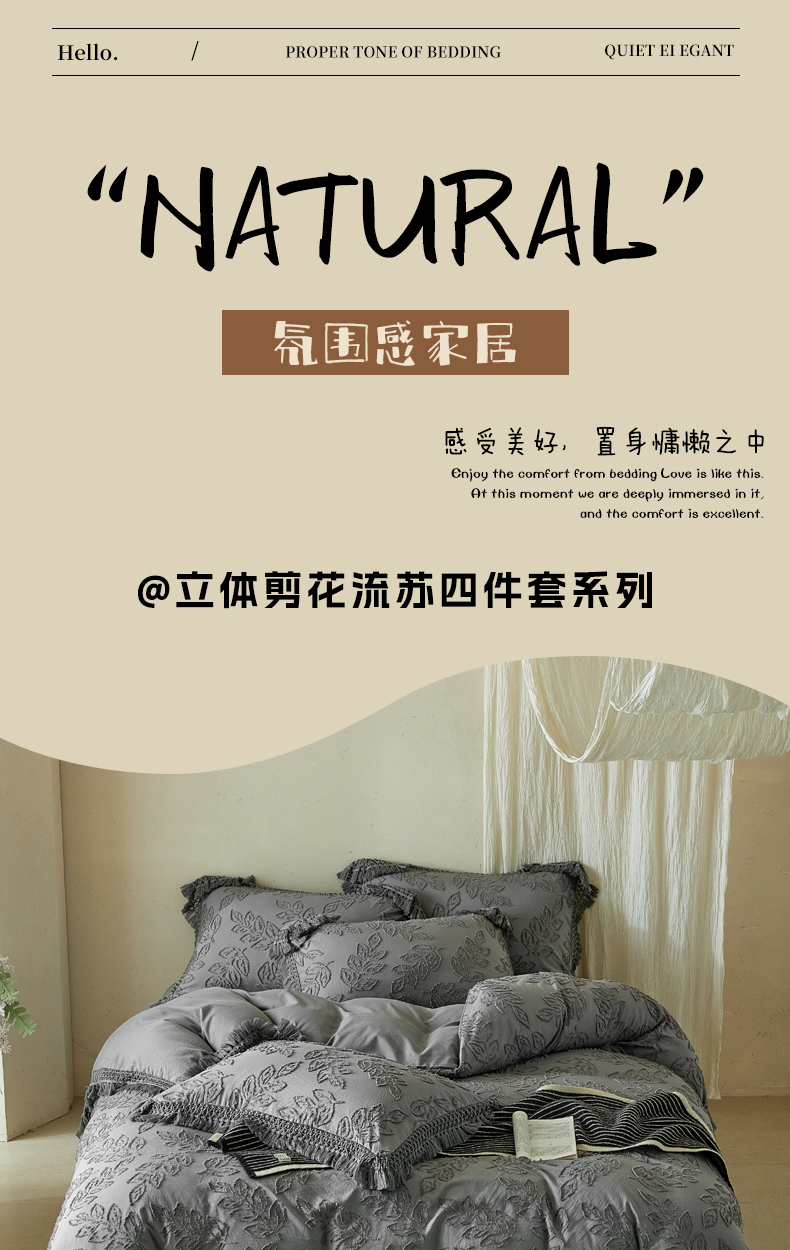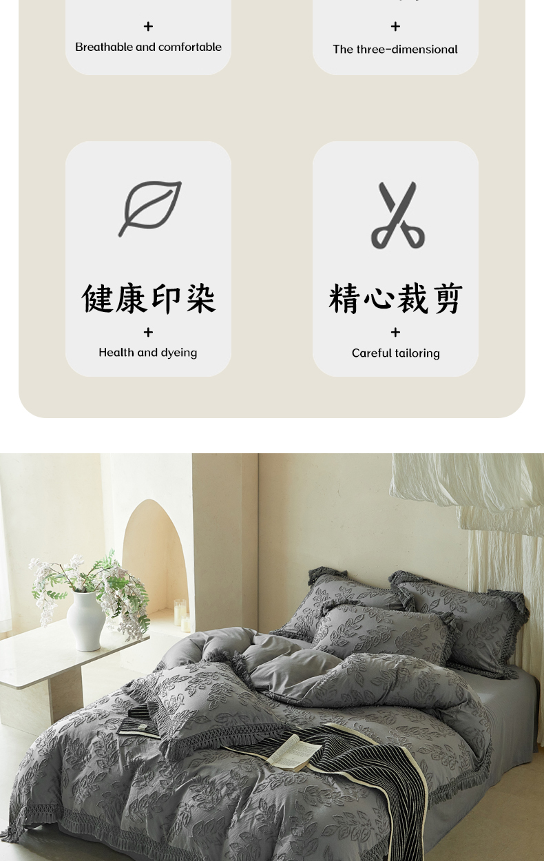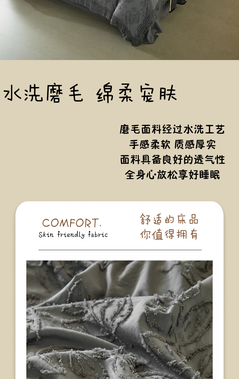 当前位置: 91家纺网 > 商品网购 > 床品套件 > 四件套 > 其它四件套 > 缘生活 2026春夏新款民宿立体剪花蝴蝶结流苏四件套 剪花落叶流苏深灰