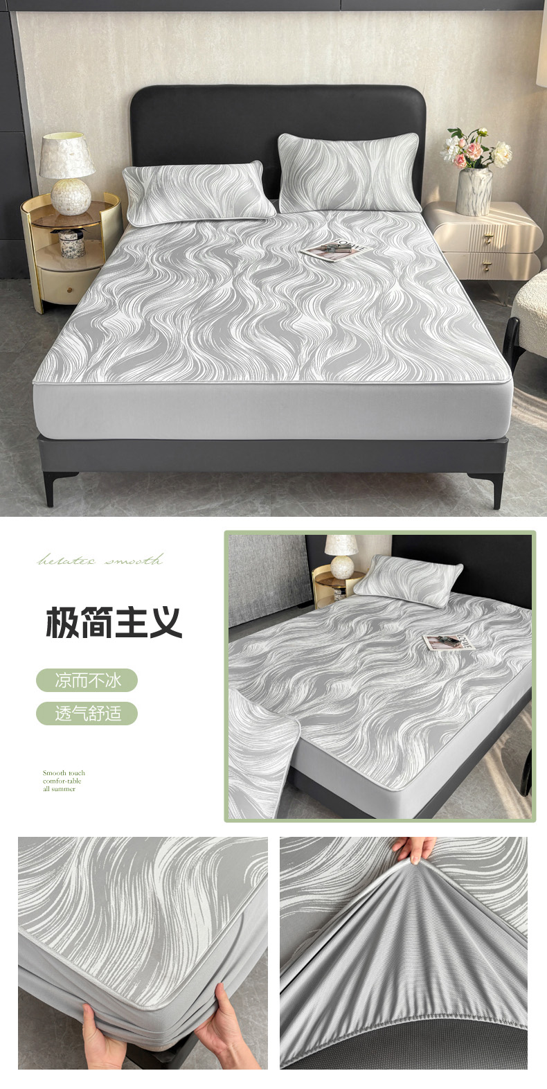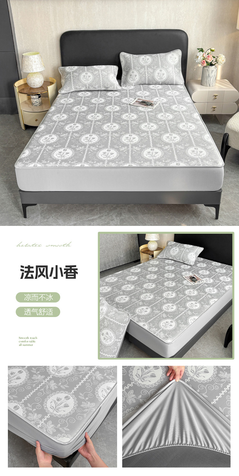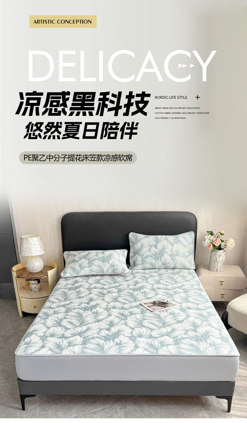商品名称:麋兔 2026新款PE聚乙中分子提花床笠款凉席席子 羽爱