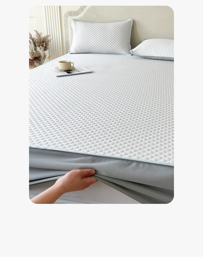 (总)莱米家纺 2026新款PE凉感冰豆豆床裙水墨画系列,南枝-粉,南枝-灰,南枝-蓝,南枝-绿
