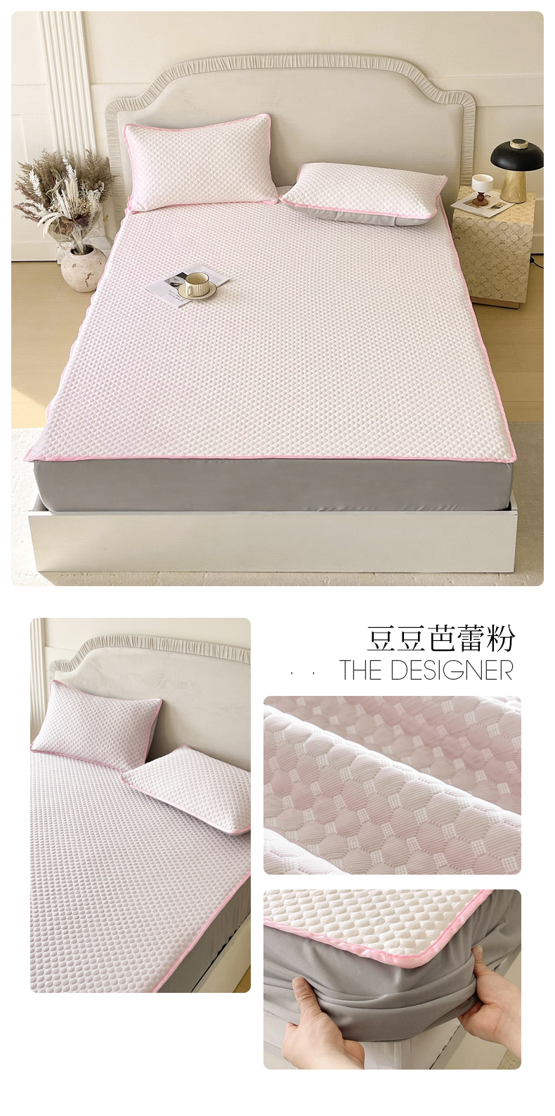 莱米家纺 2026新款简约纯色凉豆豆软席床笠款凉席 豆豆芭蕾粉