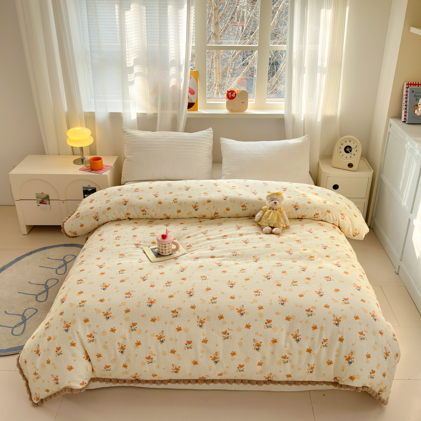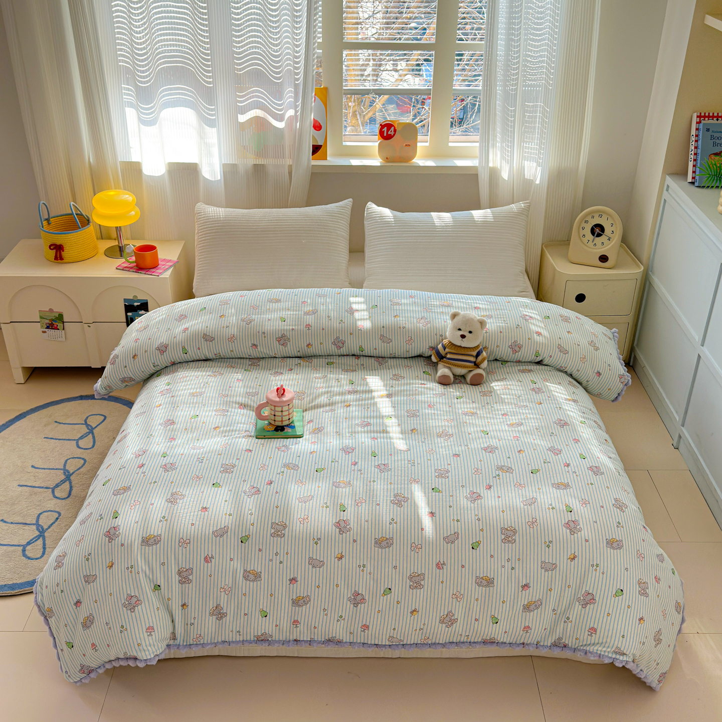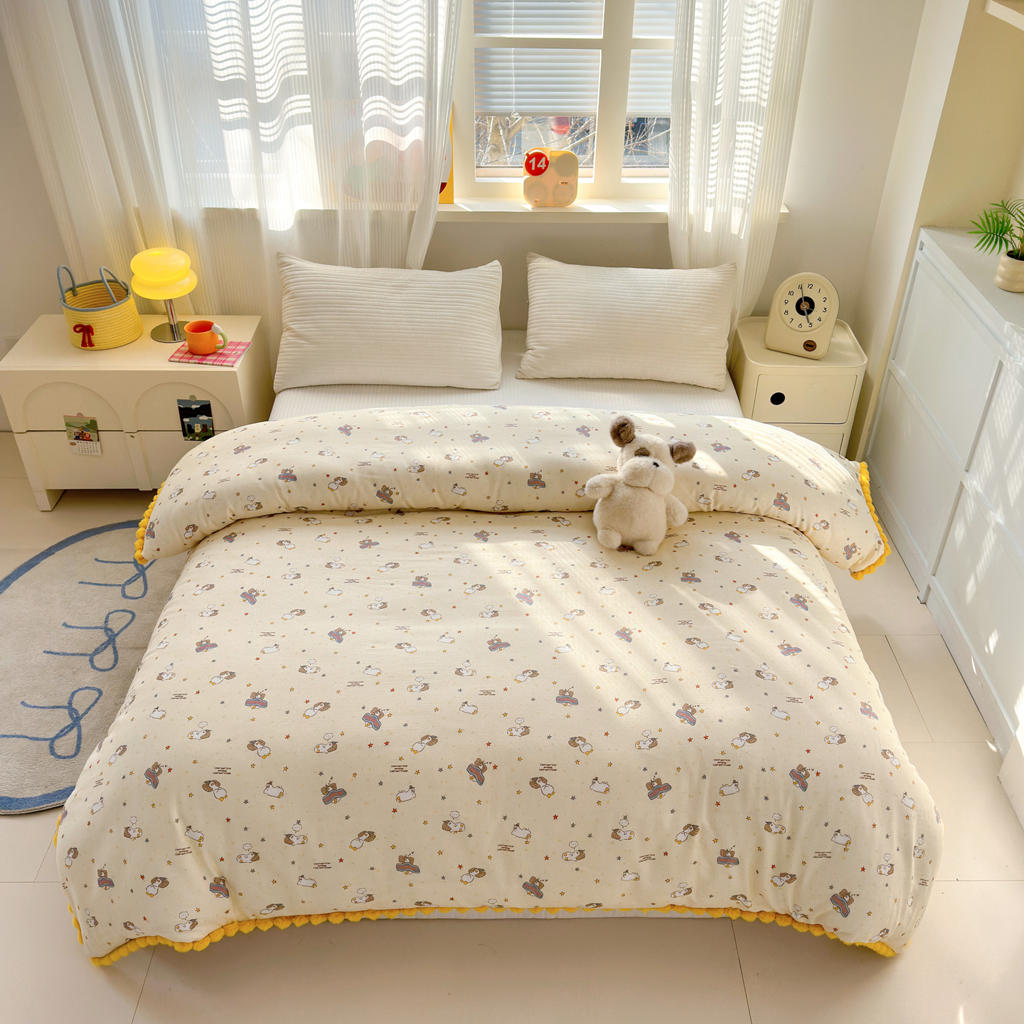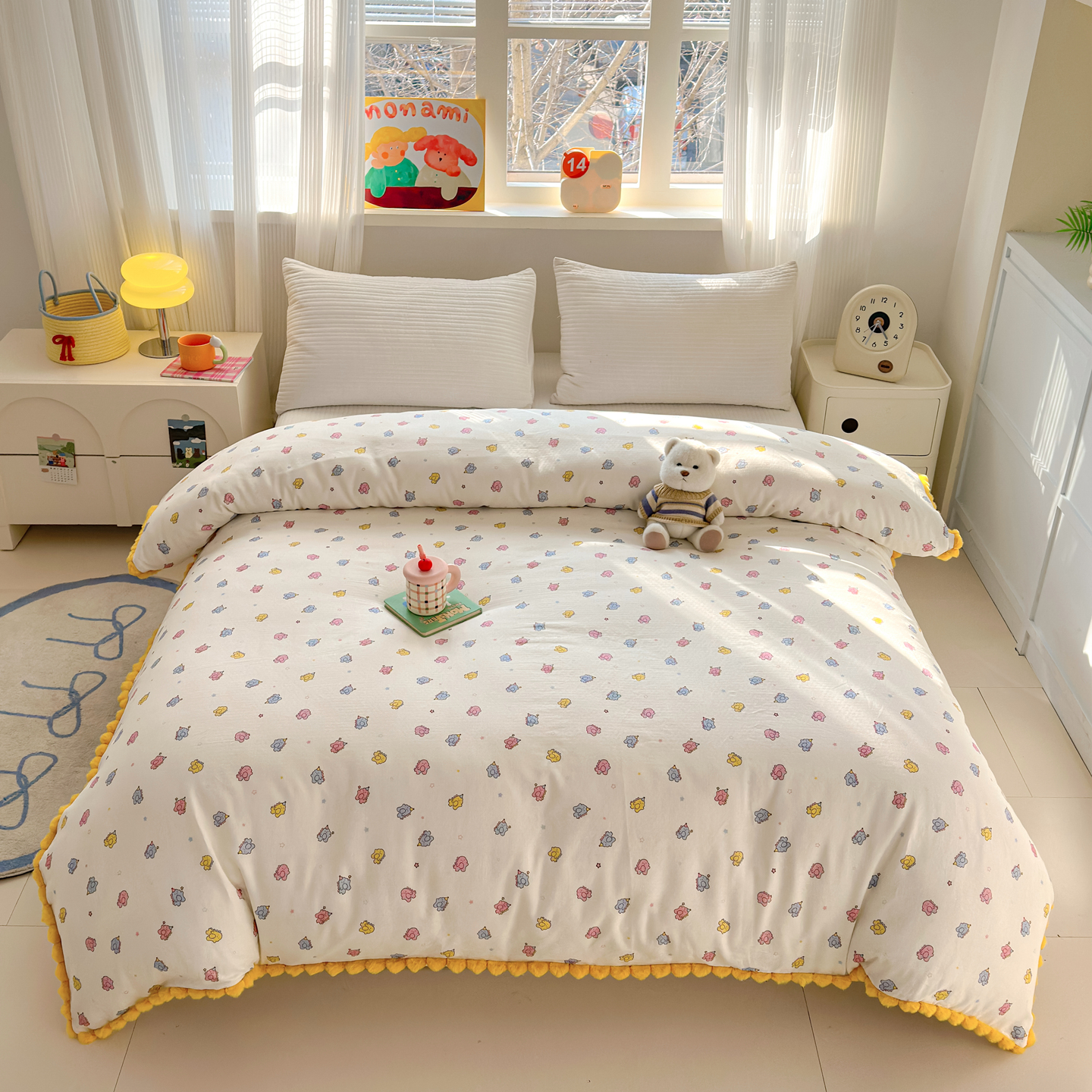 (总)丽涵家纺 2026新款全棉双层纱毛球花边单品被套,晚安鸭-黄,晚安鸭-绿,小怪兽,小象马戏团,小熊郊游,熊猫笨笨,音乐小象-绿,音乐小象-紫