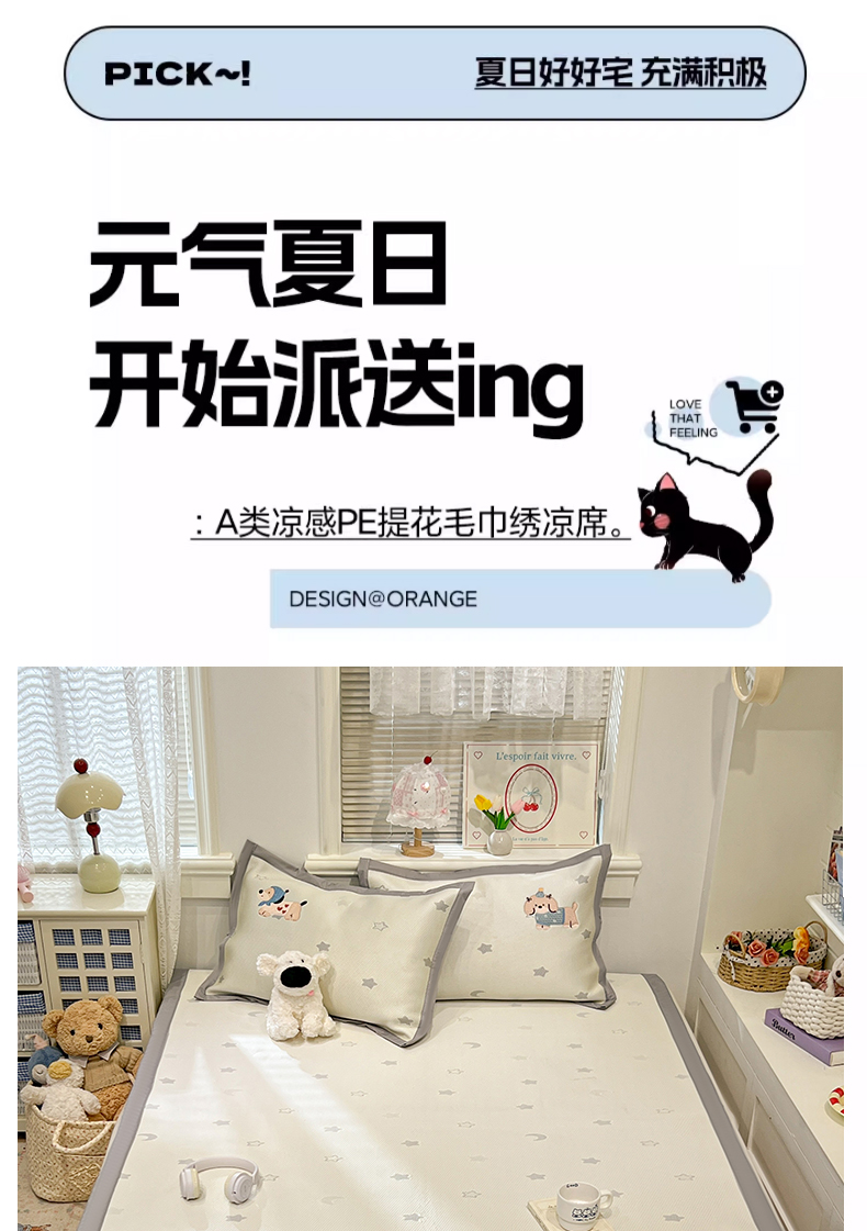 (总)川悦生活 2026新款PE凉感提花豆豆席平铺款三件套,费尔冰雪,尼尔-粉,尼尔-星灰,朴朴小旺,甜心-奶粉,甜心-水蓝,甜心-月灰,甜心奶猫,夏季岛屿-粉,夏季岛屿-月银,星花小猫,月桂-月银,奶油星月,爱心猫咪-茶青,爱心猫咪-月白,清爽蓝调,小熊仔,樱桃果塔,沐月玫瑰-清粉