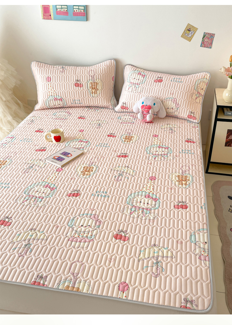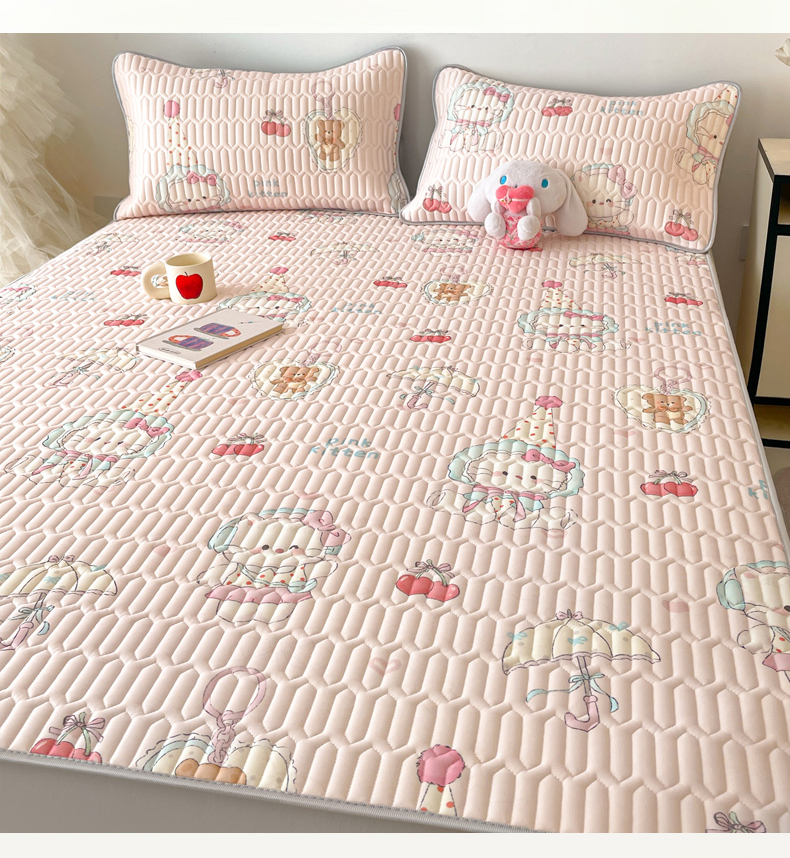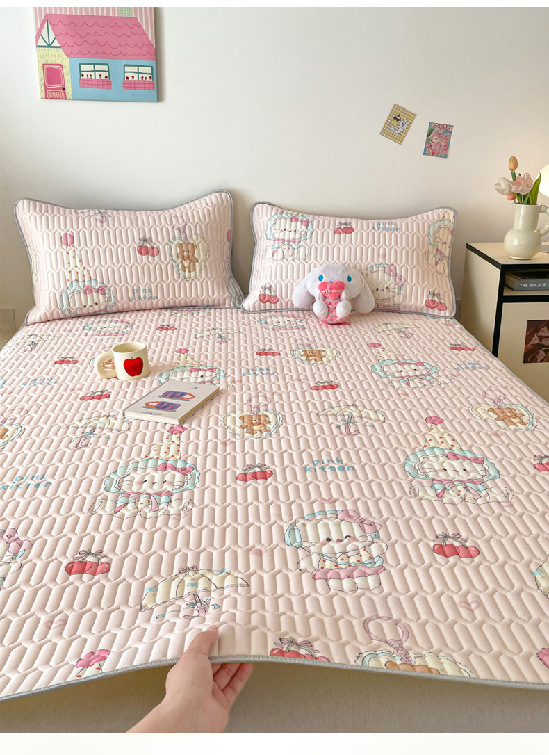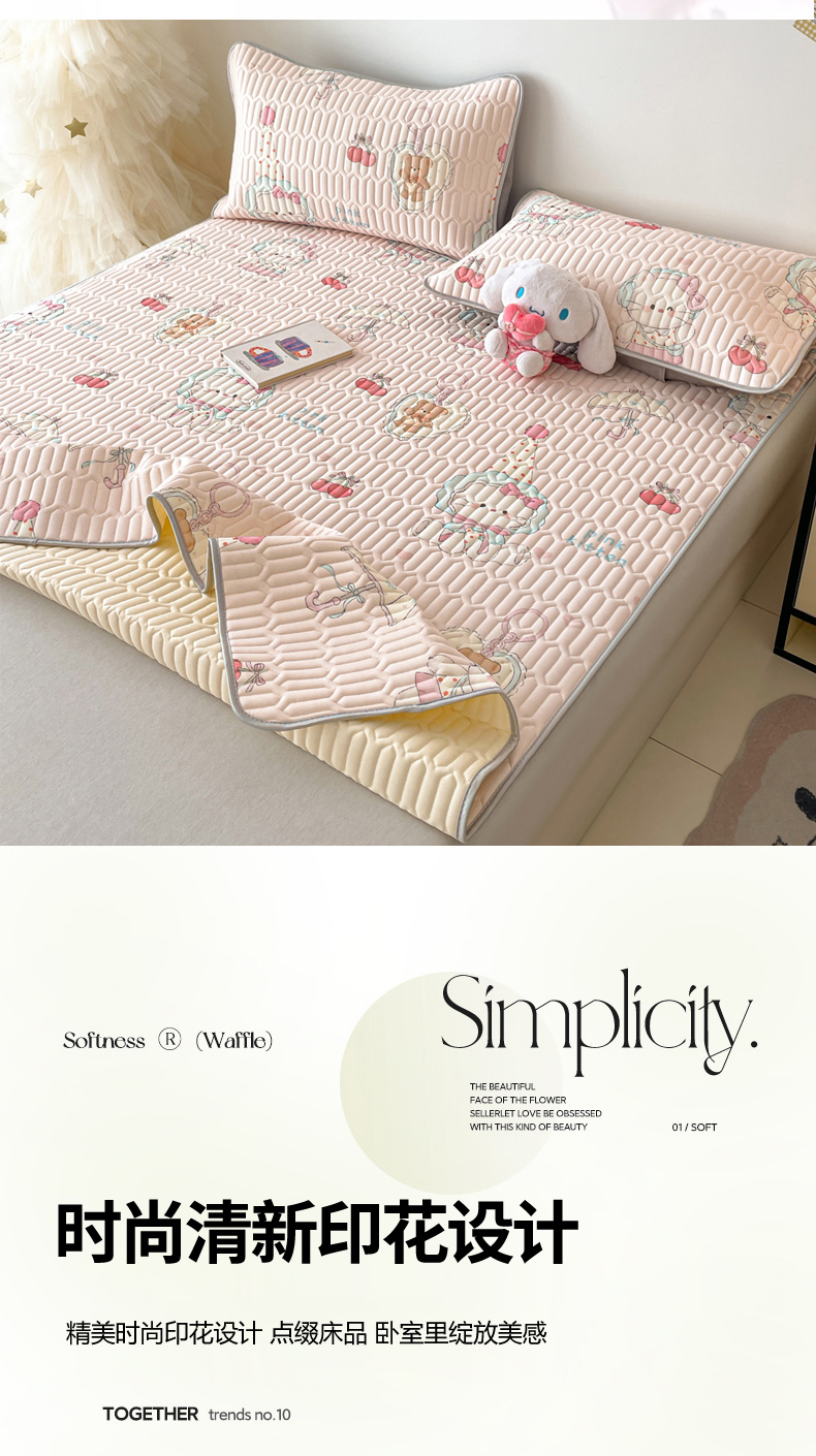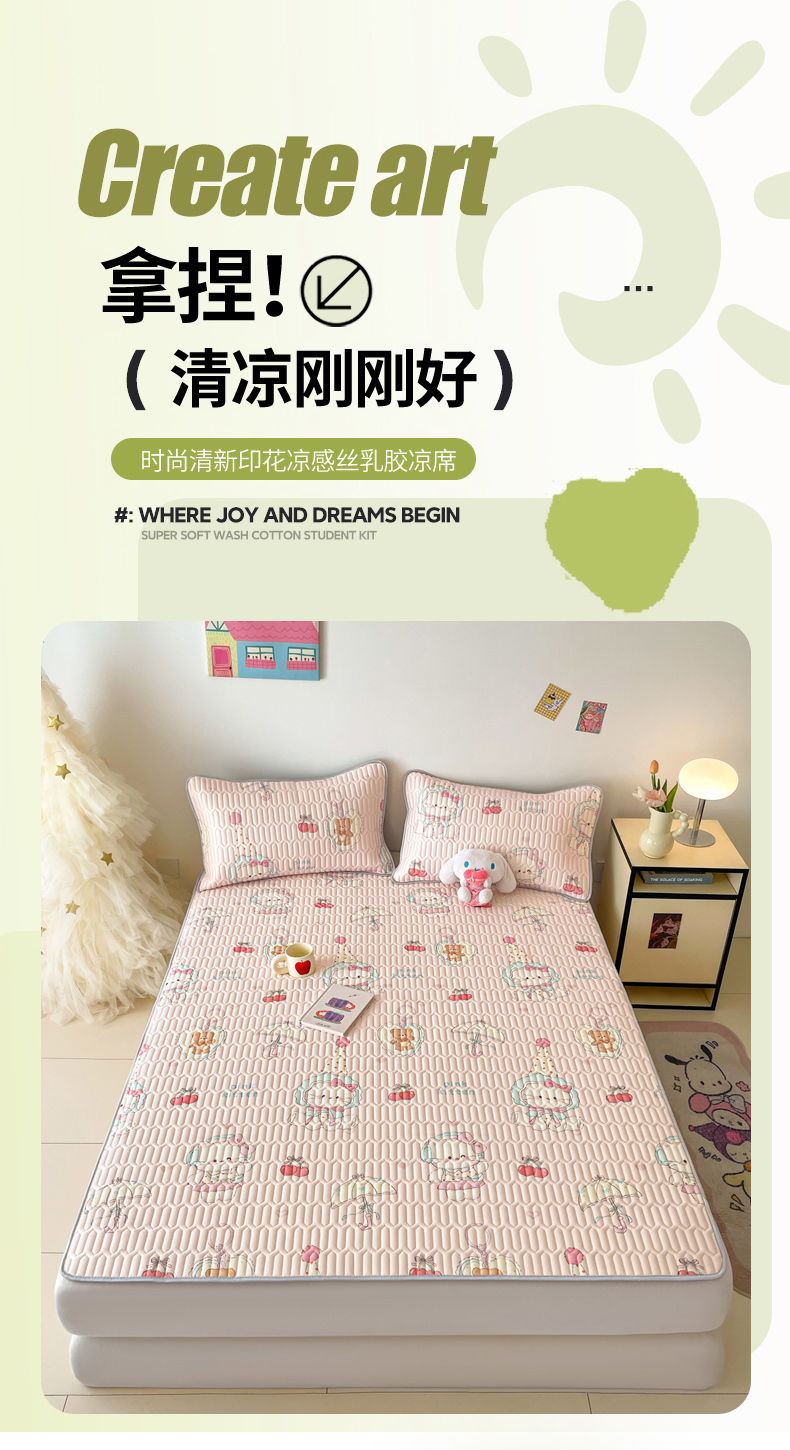 沐慕 2026新款小清新凉感丝乳胶凉席三件套 樱桃萌猫
