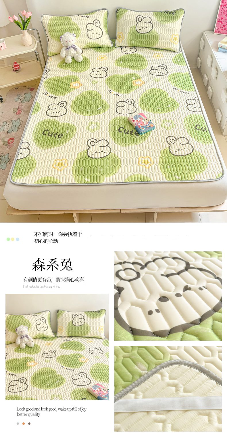 (总)沐慕 2026新款小清新凉感丝乳胶凉席三件套,爱心小兔,花花粉兔,萌萌鸭,萌宠礼物,豹纹小兔,萝莉猫,腊肠狗,粉格帽宠,三小只,森系兔,碎花小猫,糖果甜梦园,天使星星人,晚安拼格猫,樱桃萌猫,郁金香,云朵小熊