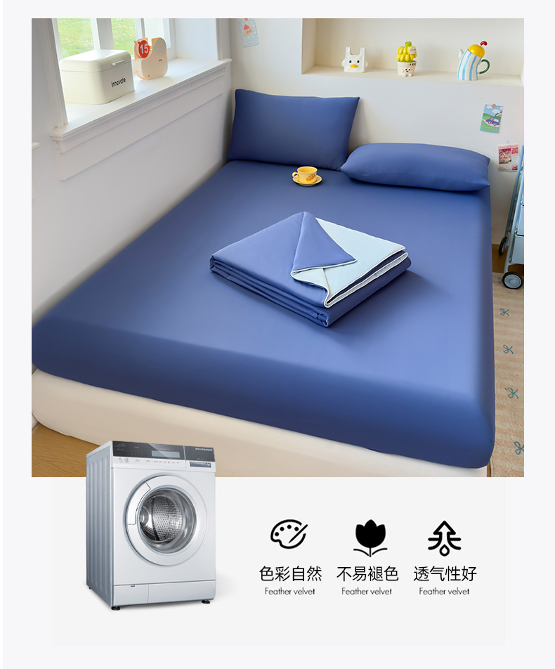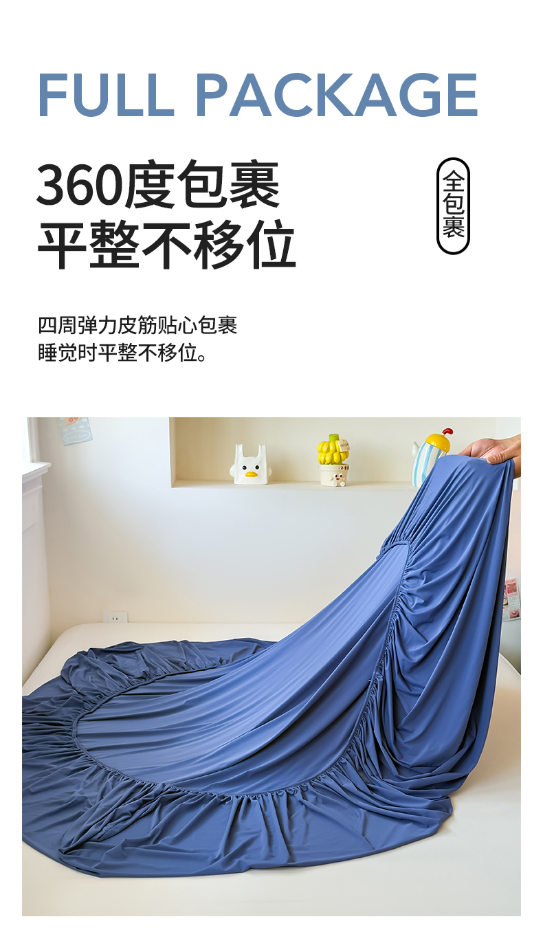 (总)大吉 2026新款纯色锦氨系列单床笠,深睡蓝,清月紫,摩卡咖,奶油白,天空蓝,薄荷绿,荔枝粉,本白,雪绒灰