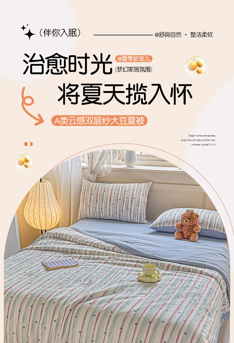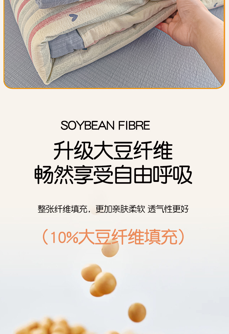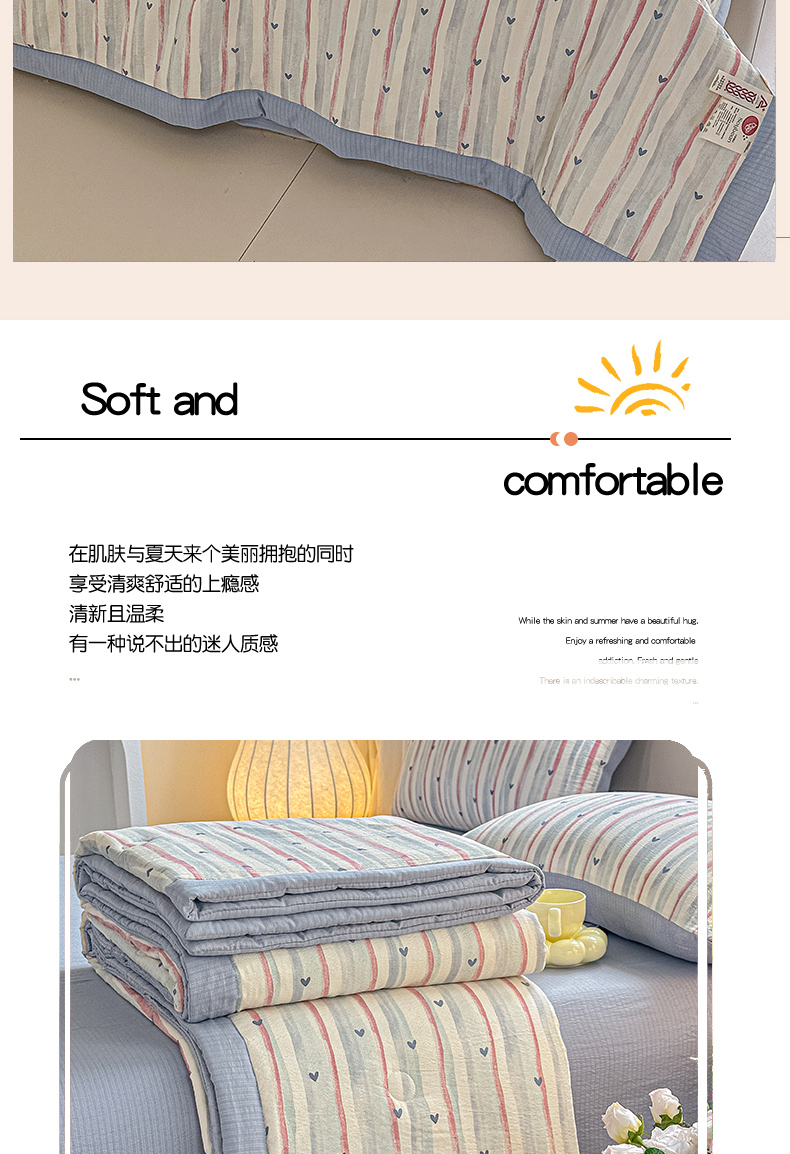 商品名称:晓时候 2026新款皱皱纱大豆夏被夏凉被空调被 桃心条纹