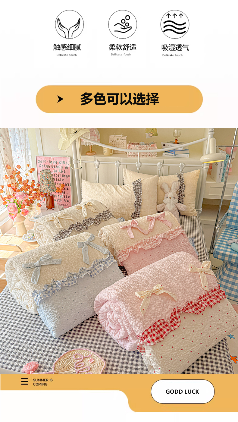 被子 > 夏被 > (总)瑞禾家纺(原阿亮) 2026新款提花泡芙面蝴蝶结花边韩剧女主感单夏被夏被夏凉被空调被四件套-奶油泡芙