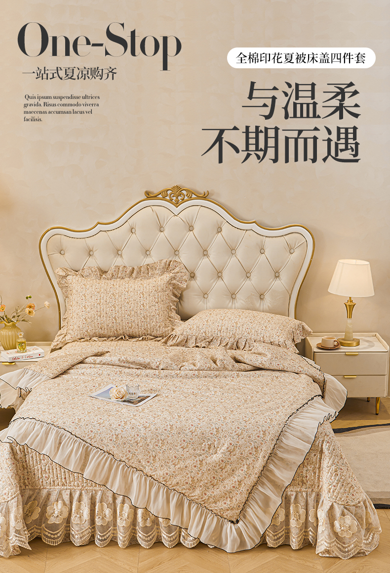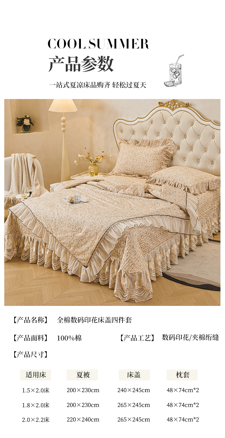 商品名称:宜凡家纺 2026新款全棉数码印花夏被床盖四件套①号系列 云卷