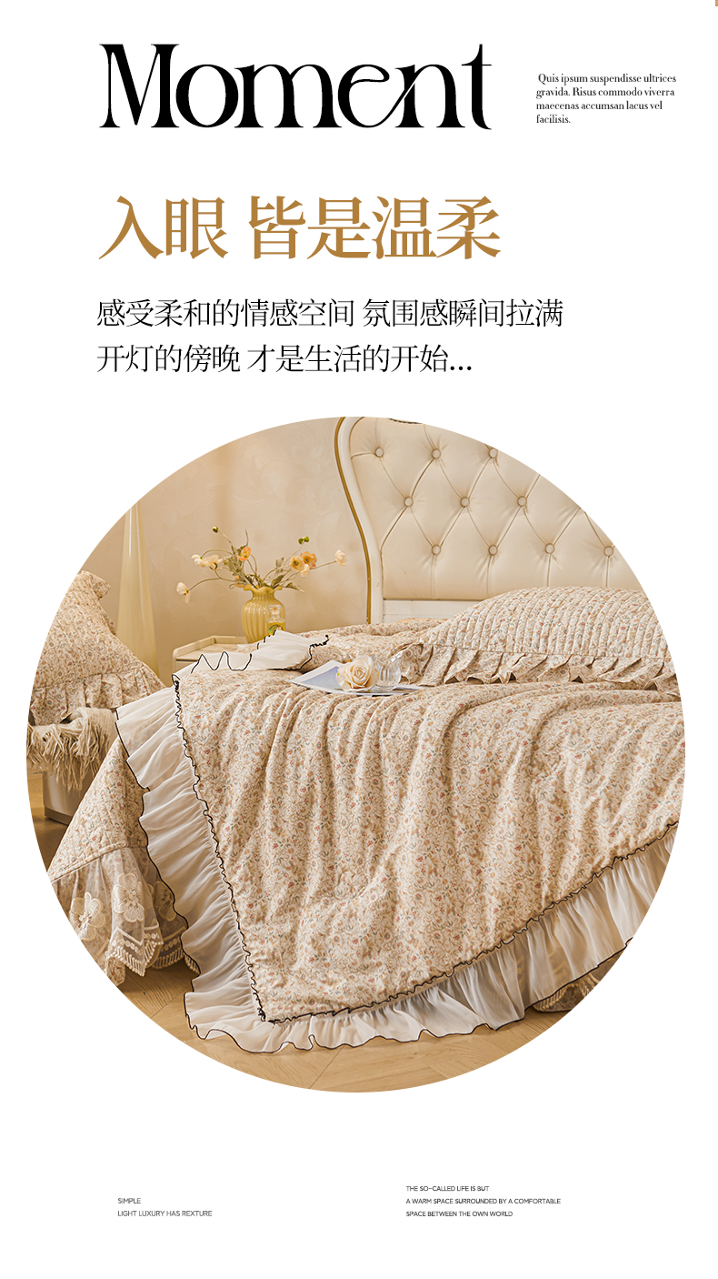 (总)宜凡家纺 2025新款全棉数码印花床裙四件套系列二,繁花似锦,春景熙熙,花间密语,花间柔光,满芯花溪,迷离夜色,婉如初见,雪域森林