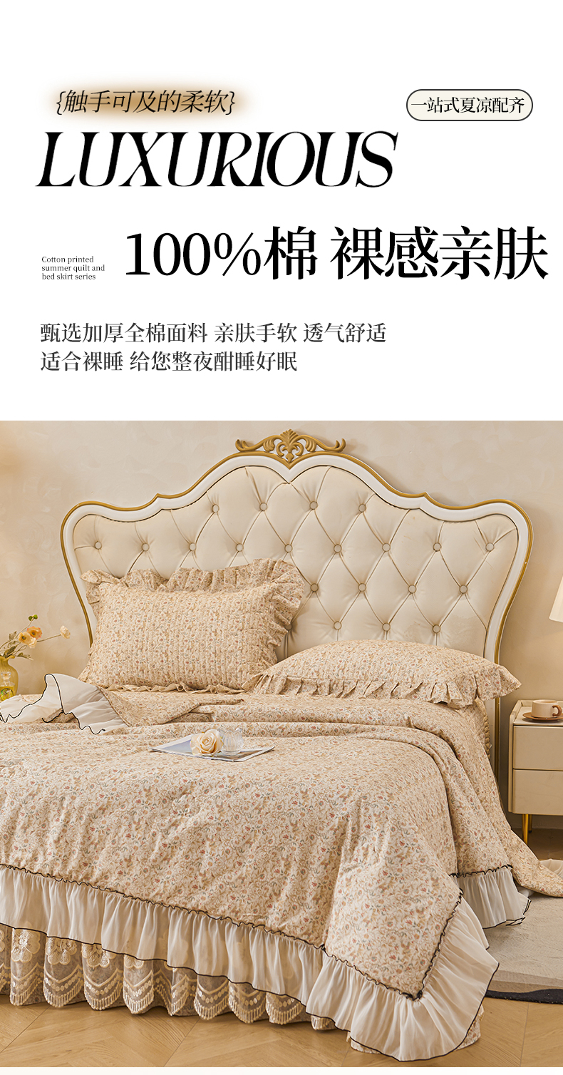 (总)宜凡家纺 2025新款全棉数码印花床裙三件套系列一,静若幽兰,浮云织梦,梦幻花园,陌上花开