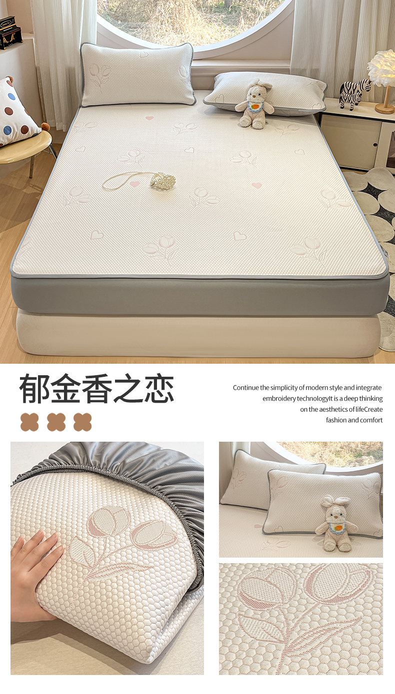 (总)天之澜家纺 2026新款PE凉豆豆凉席小红书热卖款A类冰豆豆凉席三件套可水洗豆豆凉席-床笠款