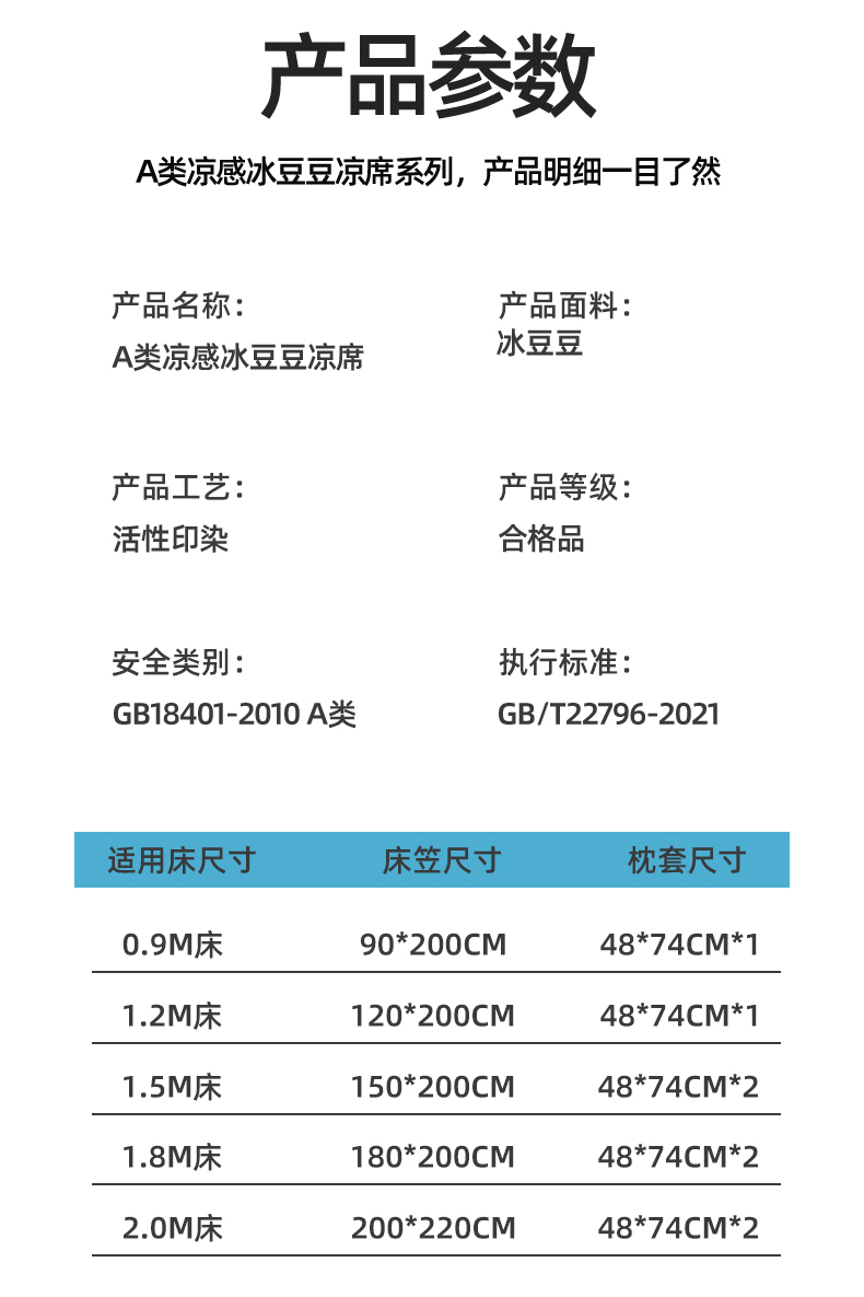 商品名称:(总)天之澜家纺 2026新款PE凉豆豆凉席小红书热卖款A类冰豆豆凉席三件套可水洗豆豆凉席-床笠款
