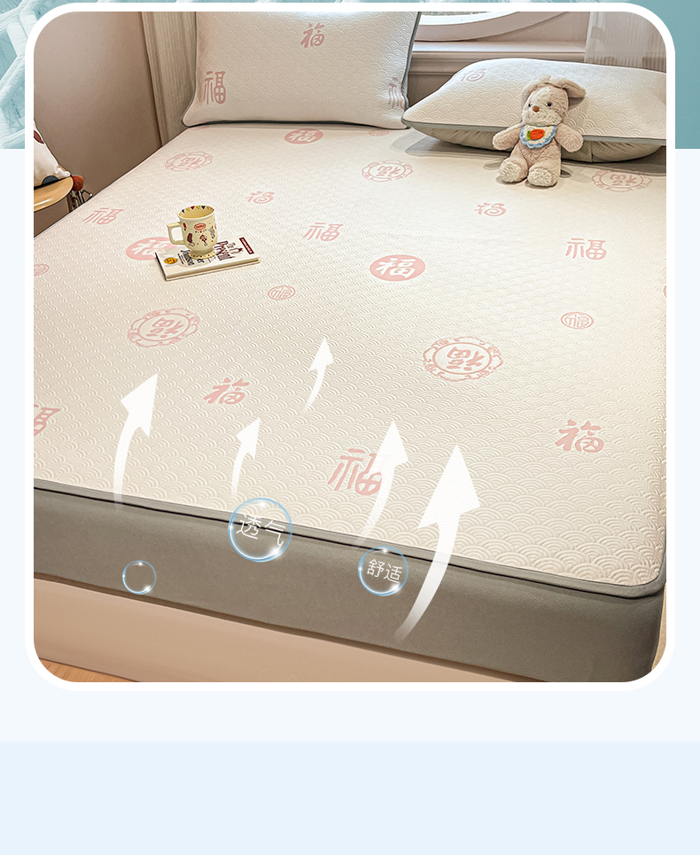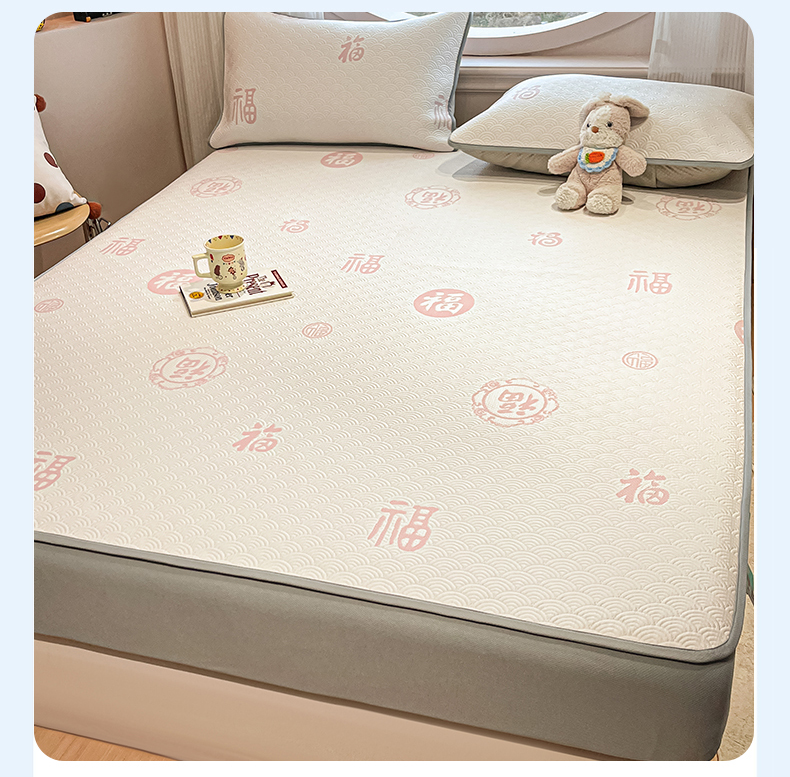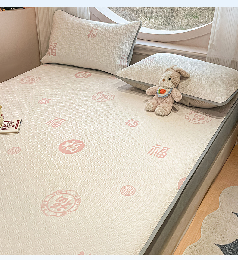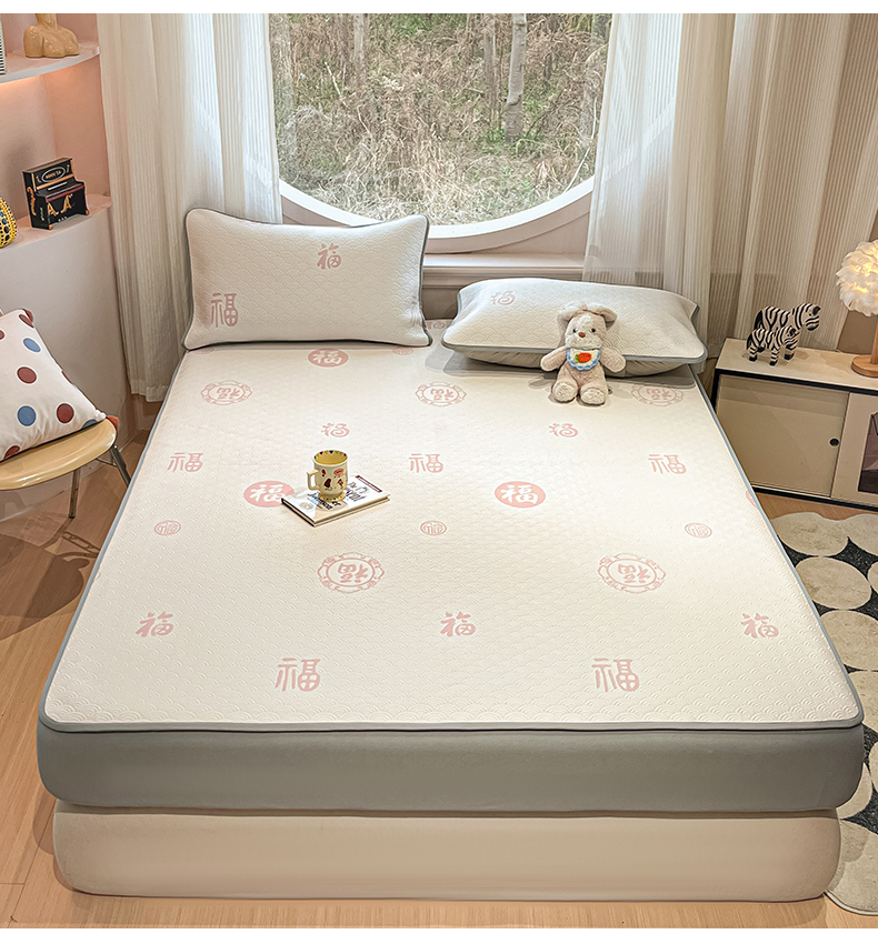 (总)天之澜家纺 2025新款新棉绒幸运熊刺绣夹棉床褥,幸运熊棕,幸运熊粉,幸运熊灰,幸运熊兰,幸运熊绿