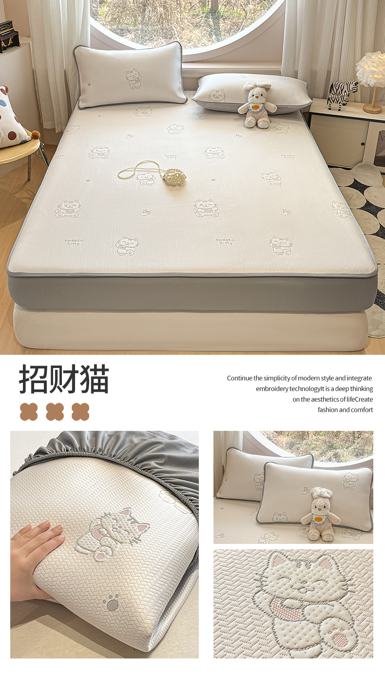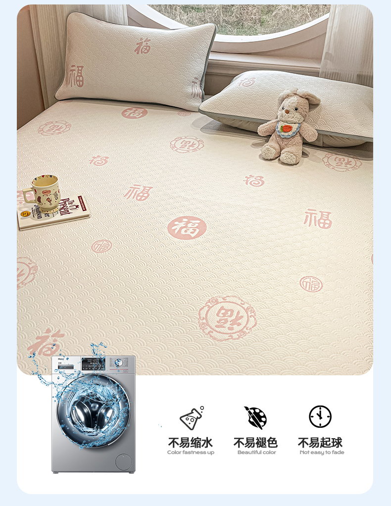 (总)天之澜家纺 2026新款PE凉豆豆凉席小红书热卖款A类冰豆豆凉席三件套可水洗豆豆凉席-床席款,福多多,国宝,快乐小熊,平步青云,甜心草莓,象小萌,小喵喵,星星人,幸运小马,郁金香之恋,熊宝宝,招财猫