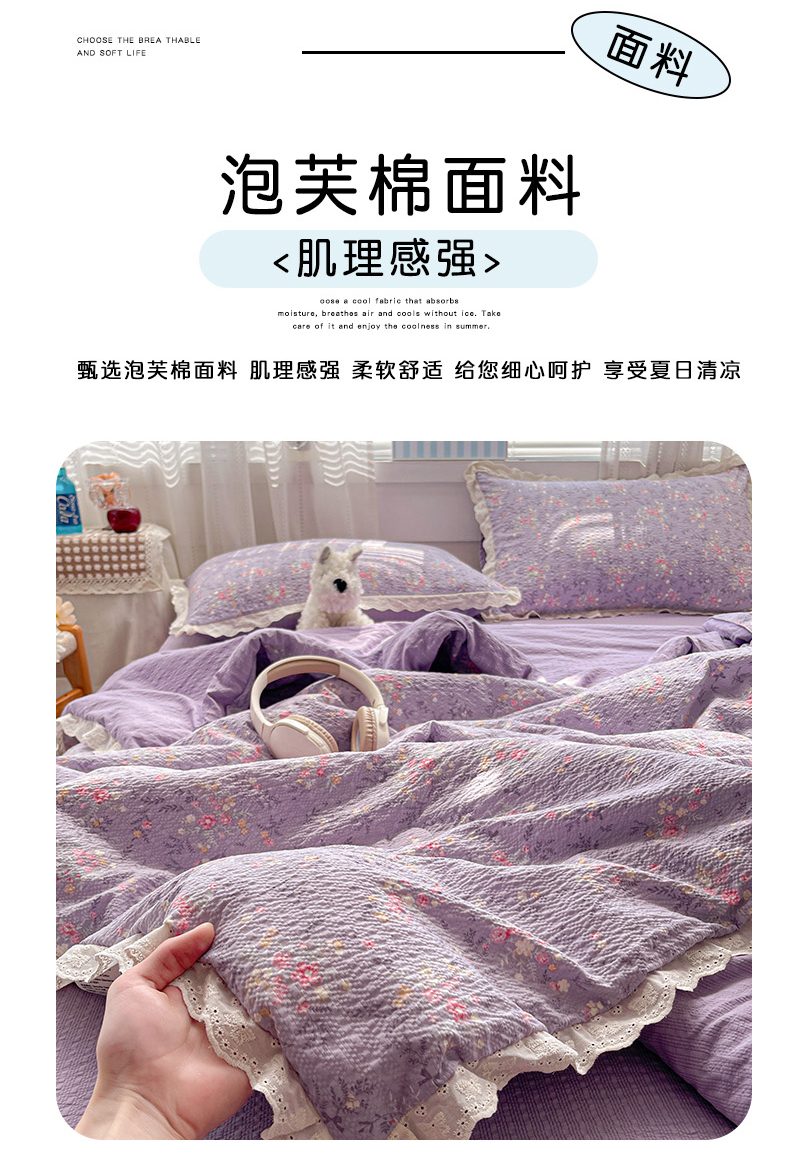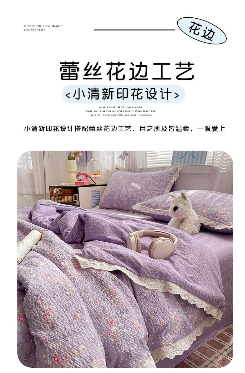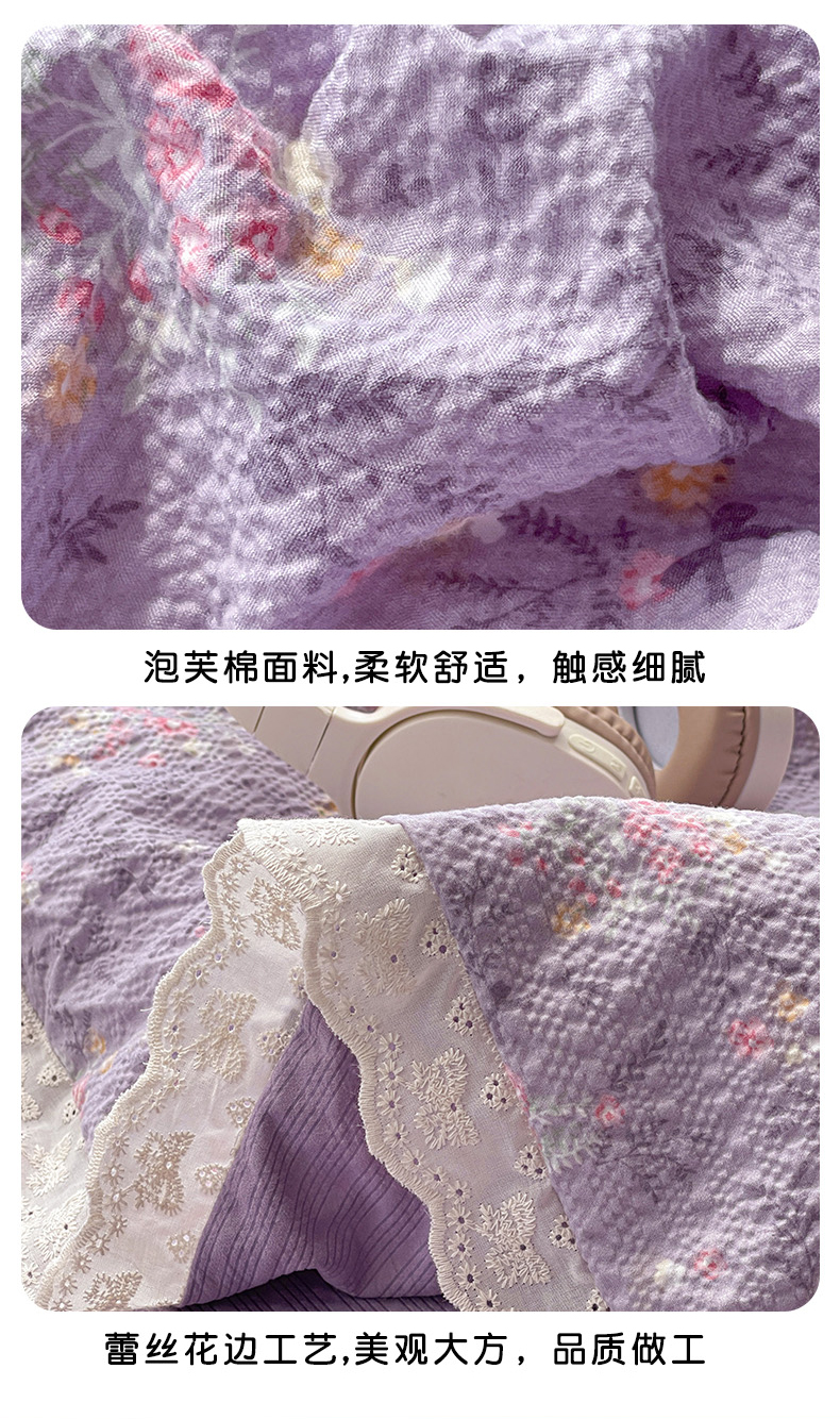 商品名称:优承佳生活馆 2026新款超柔高克重泡芙纱蝴蝶结全棉花边夏被套件单夏被 紫萱