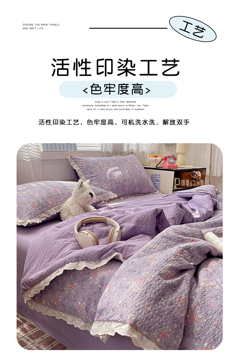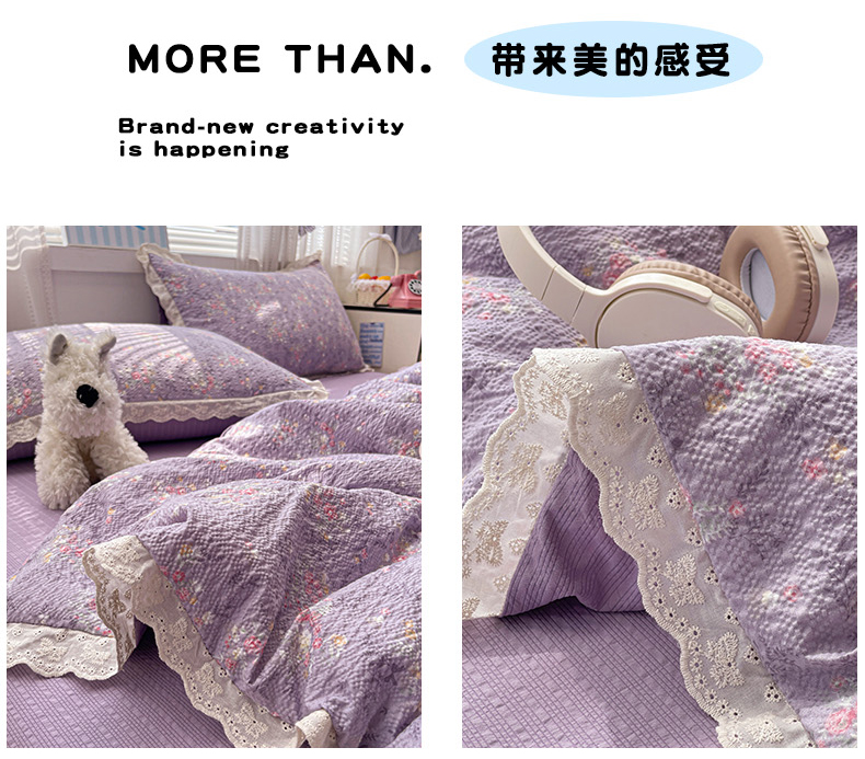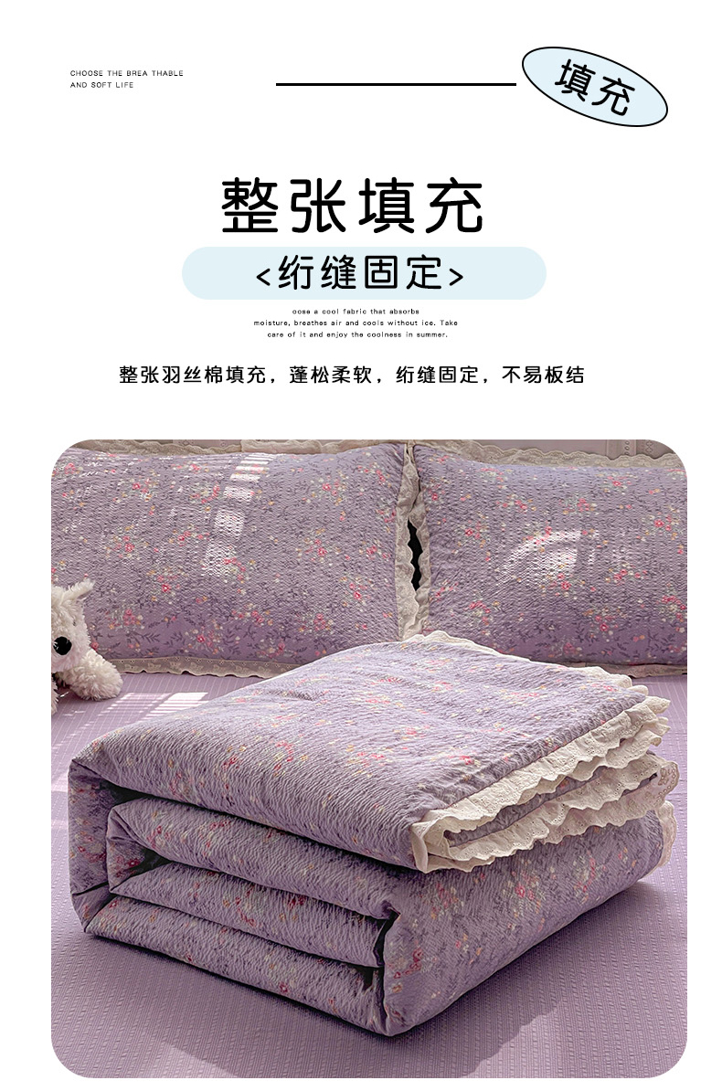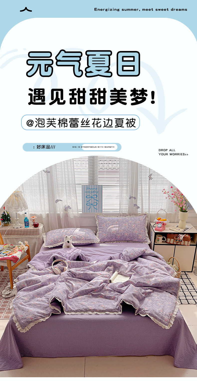 商品名称:优承佳生活馆 2026新款超柔高克重泡芙纱蝴蝶结全棉花边夏被套件单夏被 紫萱