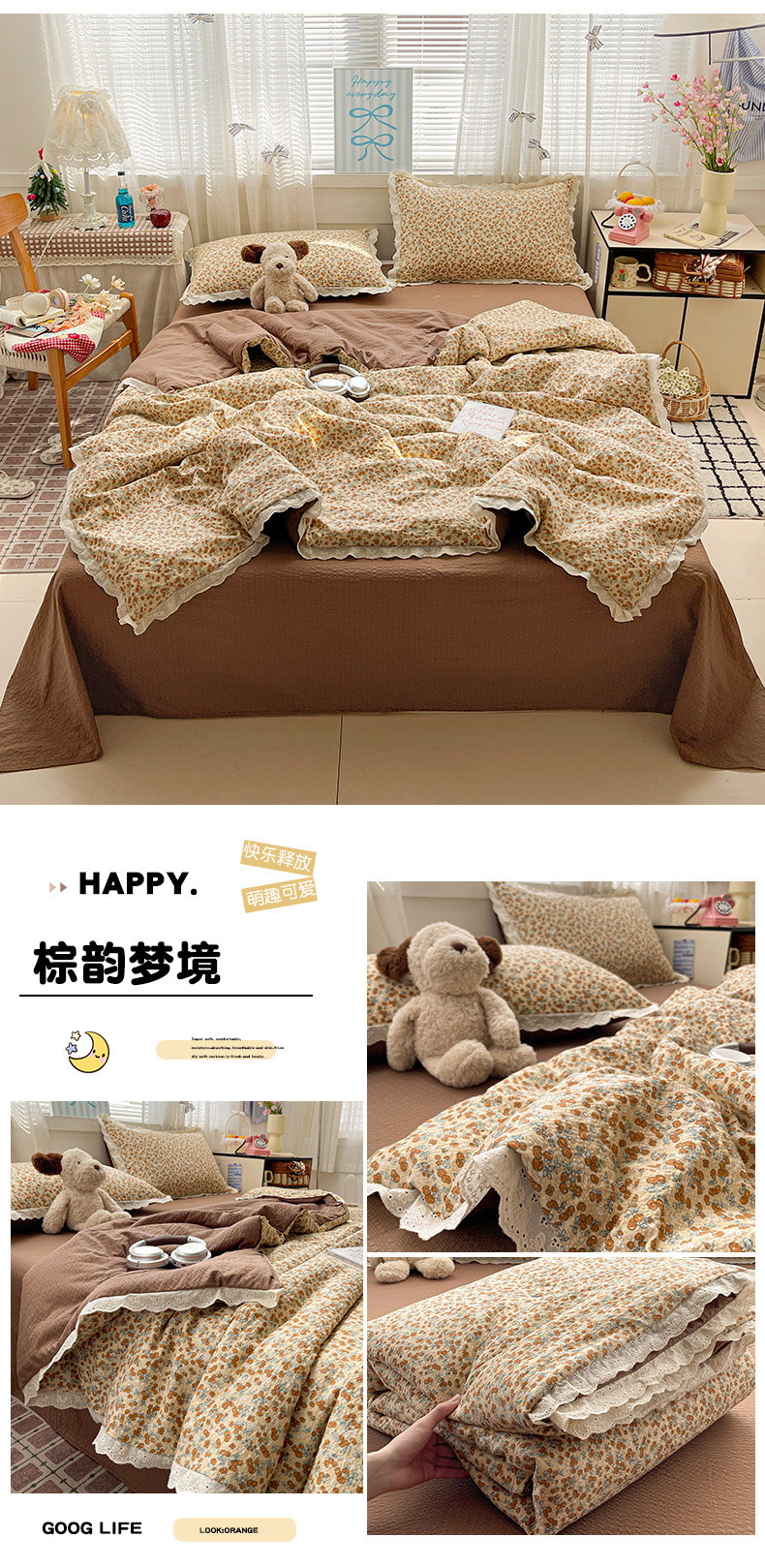 (总)优承佳生活馆 2026新款超柔高克重泡芙纱蝴蝶结全棉花边夏被套件单夏被,爱心条格,暗香疏影,芬芳馥郁,格子蝴蝶结,花清梦,花漾小窝,花屿兔,简夏,满满,曼塔庄园,木马彩虹,七里香,浅陌,蔷薇絮,甜昔花语,童趣乐园,星星木马,摇摇星人,枝蔓,紫萱,棕韵梦境,组合图