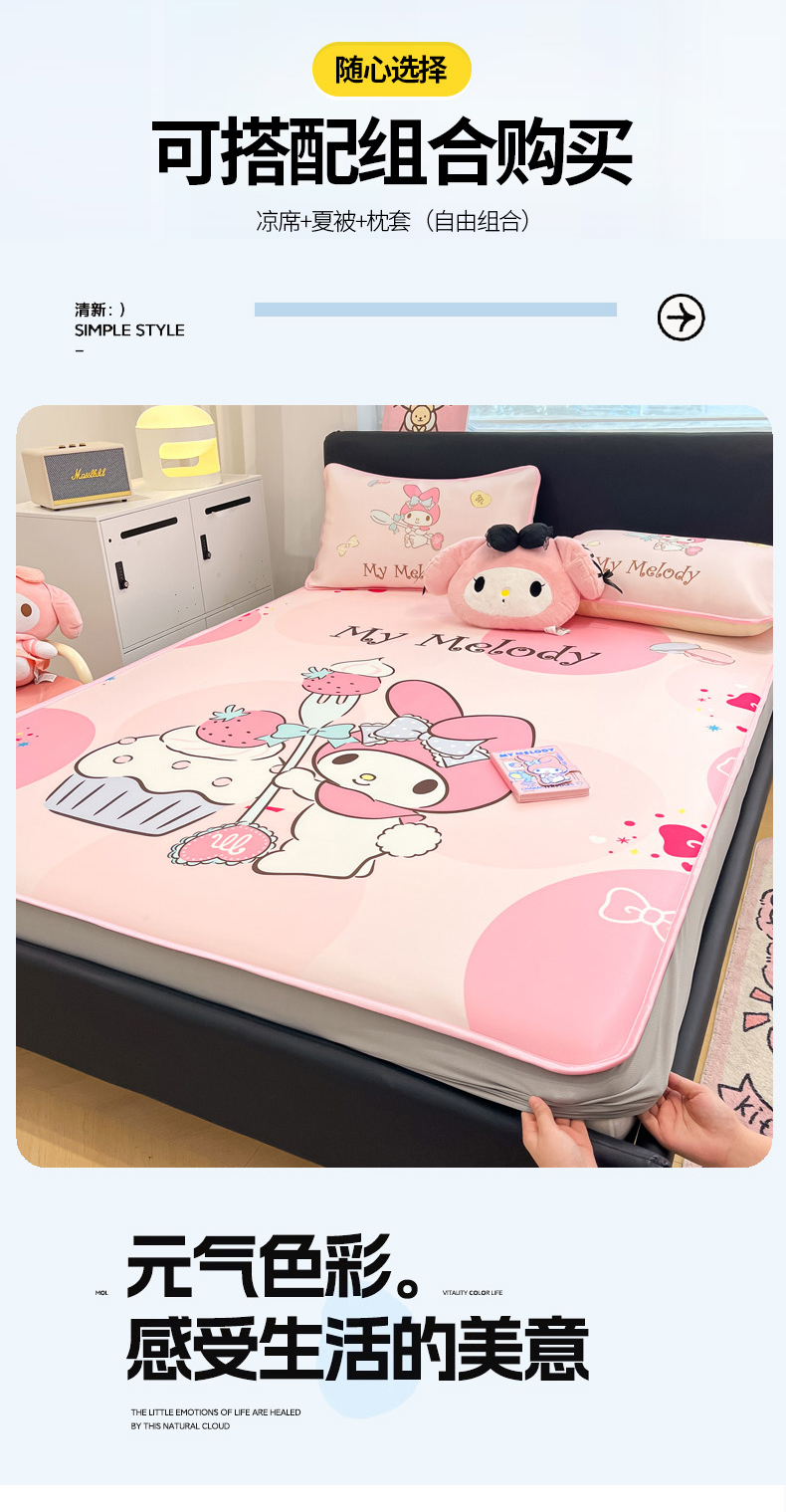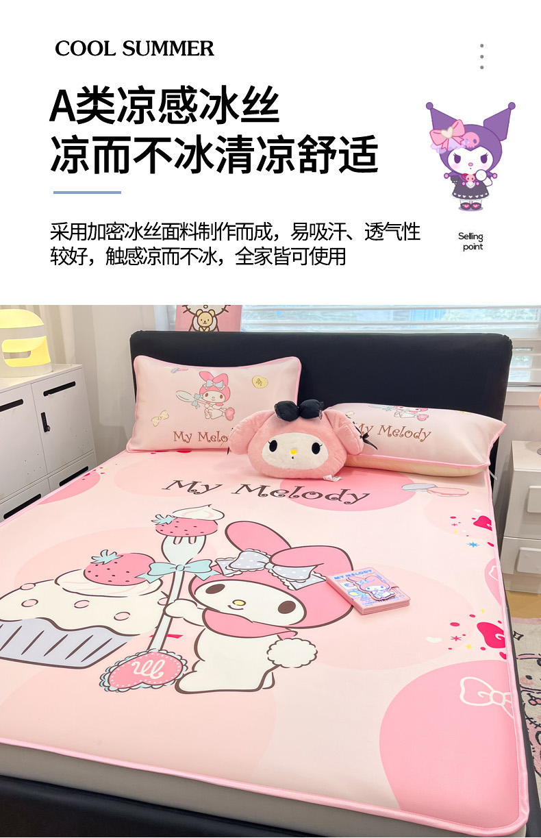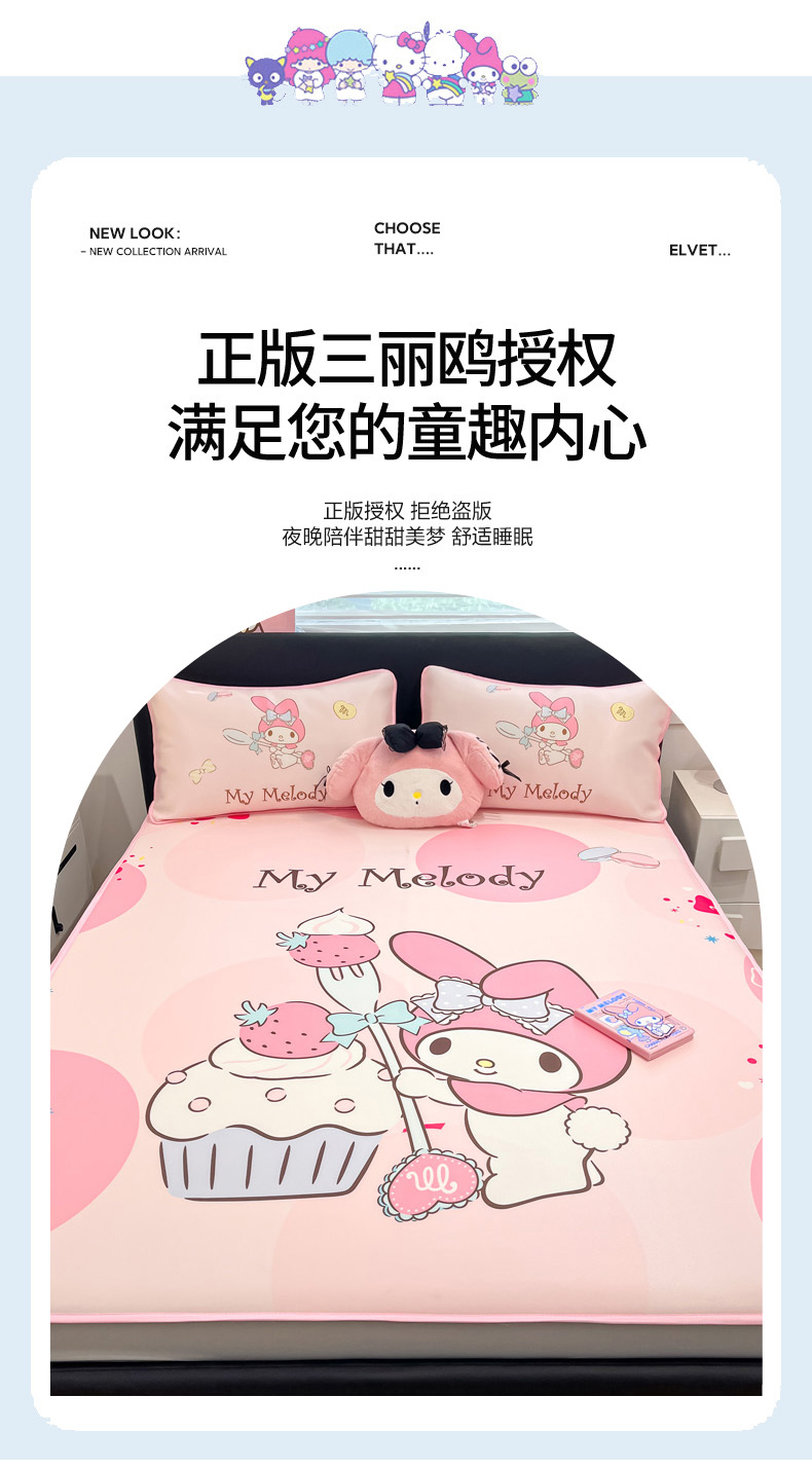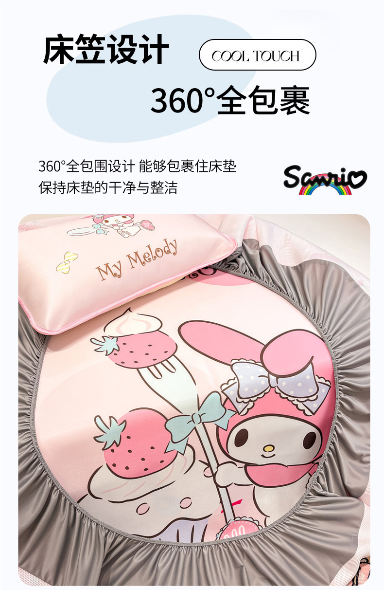 当前位置: 91家纺网 > 商品网购 > 床上用品 > 凉席 > 冰丝席 > 暮思家居 2026新款正版授权A类大版数码印花三丽鸥1200D冰丝凉席可组合仿锦氨夏被 床笠款-蛋糕美乐蒂