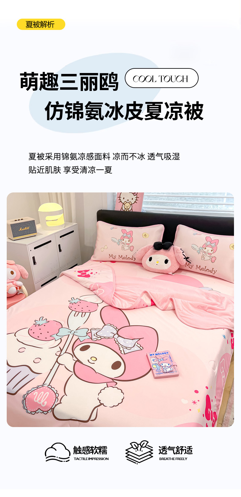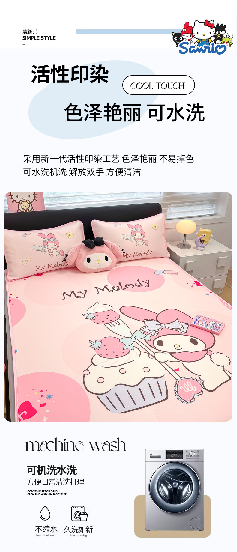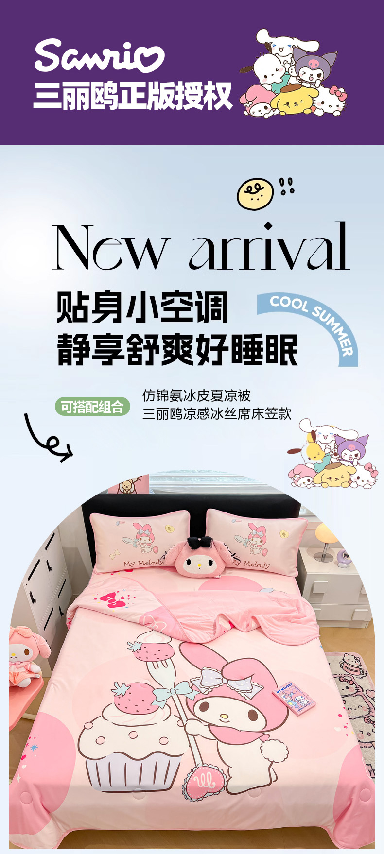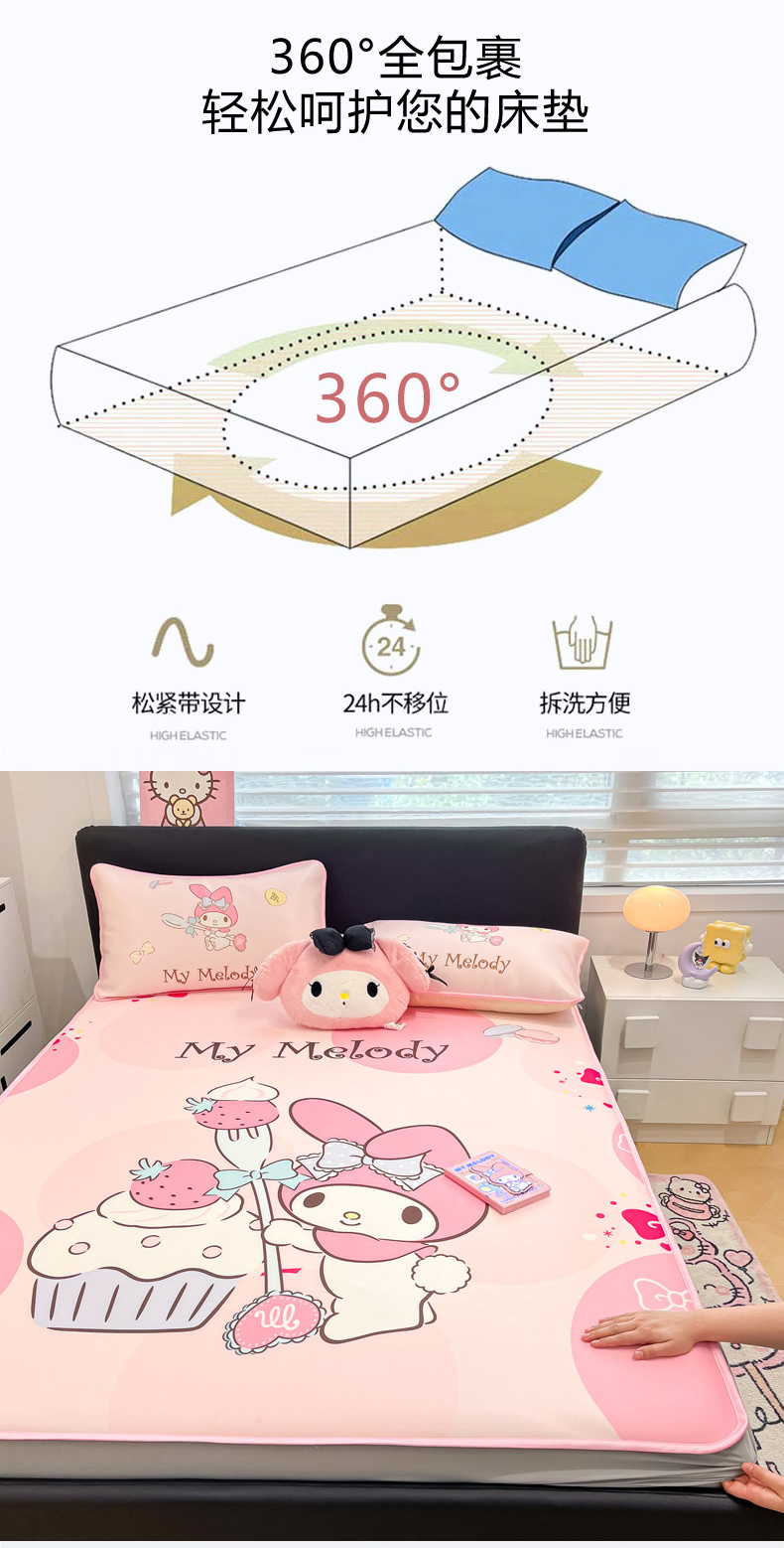 当前位置: 91家纺网 > 商品网购 > 床上用品 > 凉席 > 冰丝席 > 暮思家居 2026新款正版授权A类大版数码印花三丽鸥1200D冰丝凉席可组合仿锦氨夏被 床笠款-蛋糕美乐蒂