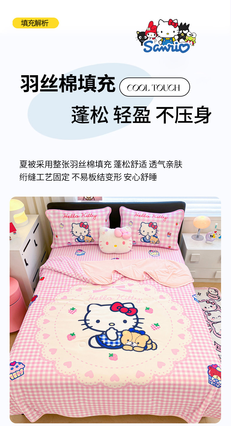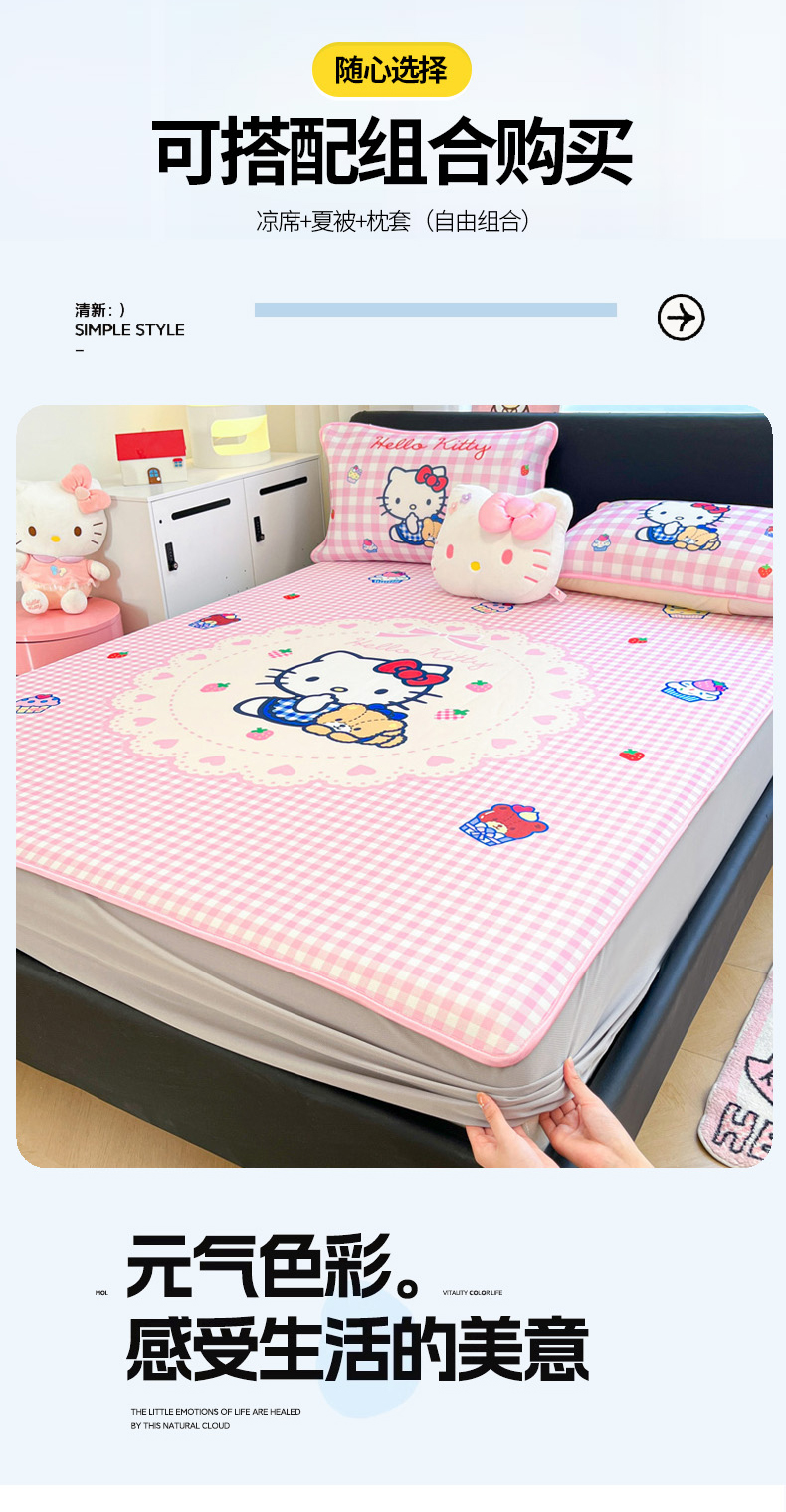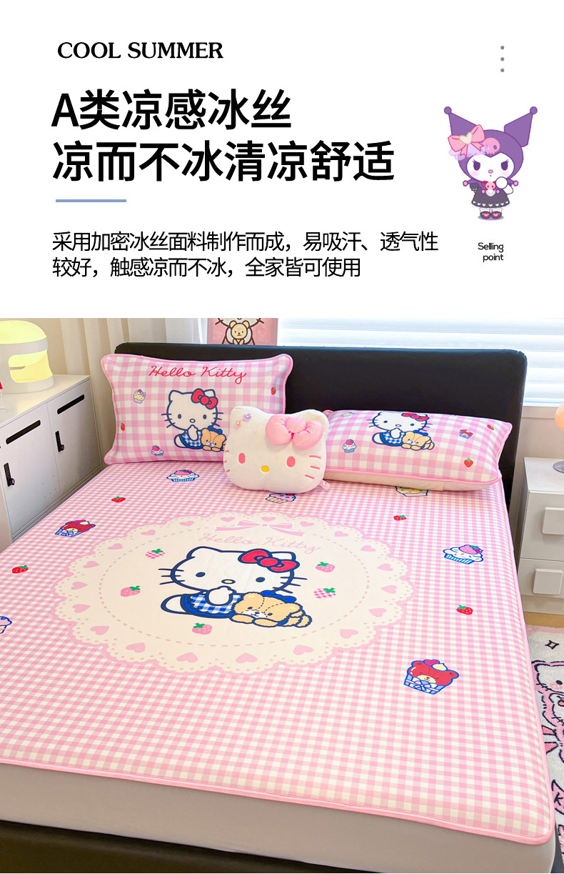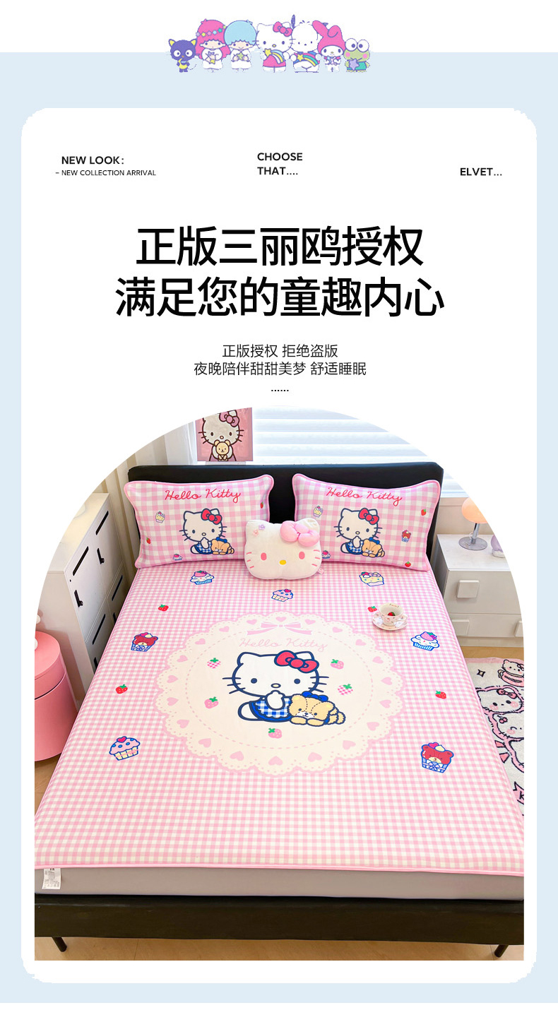 当前位置: 91家纺网 > 商品网购 > 床上用品 > 凉席 > 冰丝席 > 暮思家居 2026新款正版授权A类大版数码印花三丽鸥1200D冰丝凉席可组合仿锦氨夏被 床笠款-奶油KT