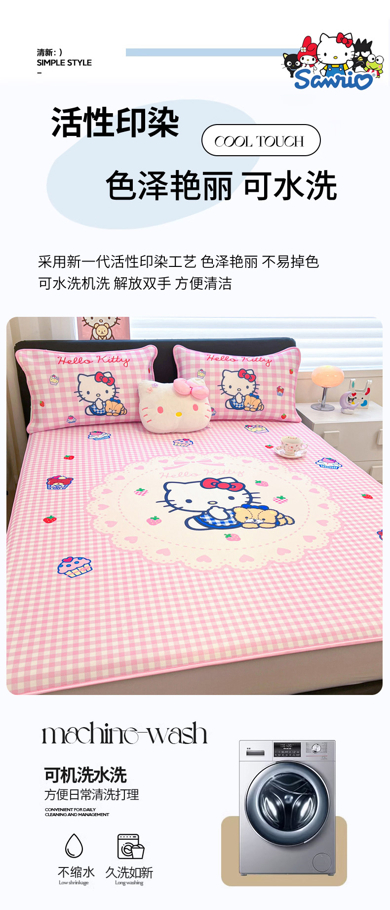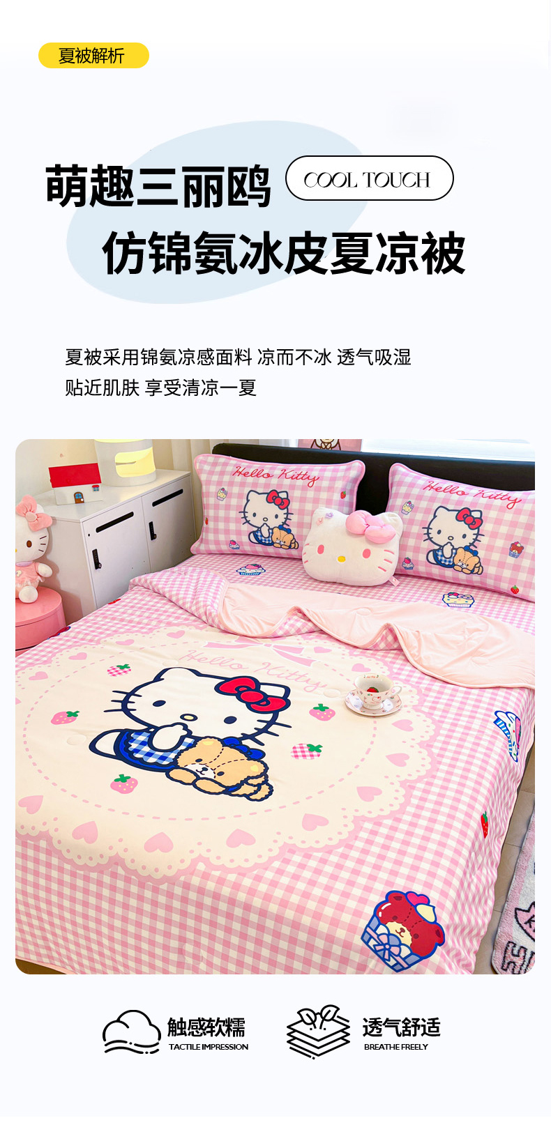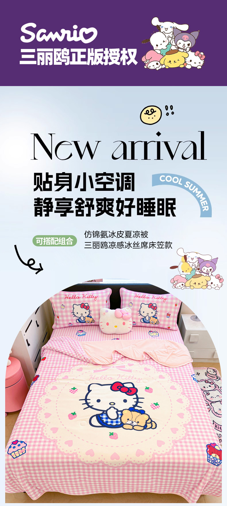 当前位置: 91家纺网 > 商品网购 > 床上用品 > 凉席 > 冰丝席 > 暮思家居 2026新款正版授权A类大版数码印花三丽鸥1200D冰丝凉席可组合仿锦氨夏被 床笠款-奶油KT