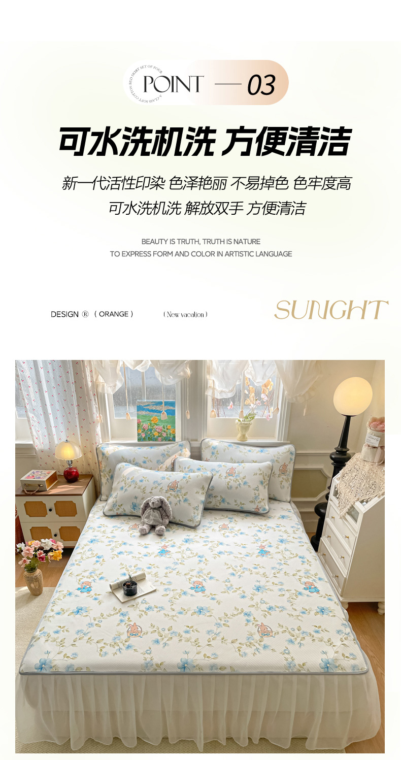 (总)柒月家居 2026新款斜纹凉感豆豆床裙款凉席,床裙-蓝雾花枝,床裙-粉豹黑皮,床裙-粉花软熊,床裙-粉蓝萌猫,床裙-花花精灵,床裙-花筐奶兔,床裙-玫瑰园,床裙-浅夏花兔,床裙-青叶萌物