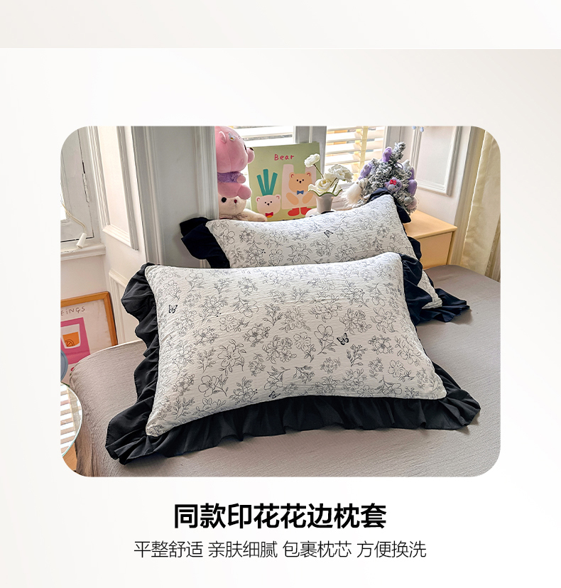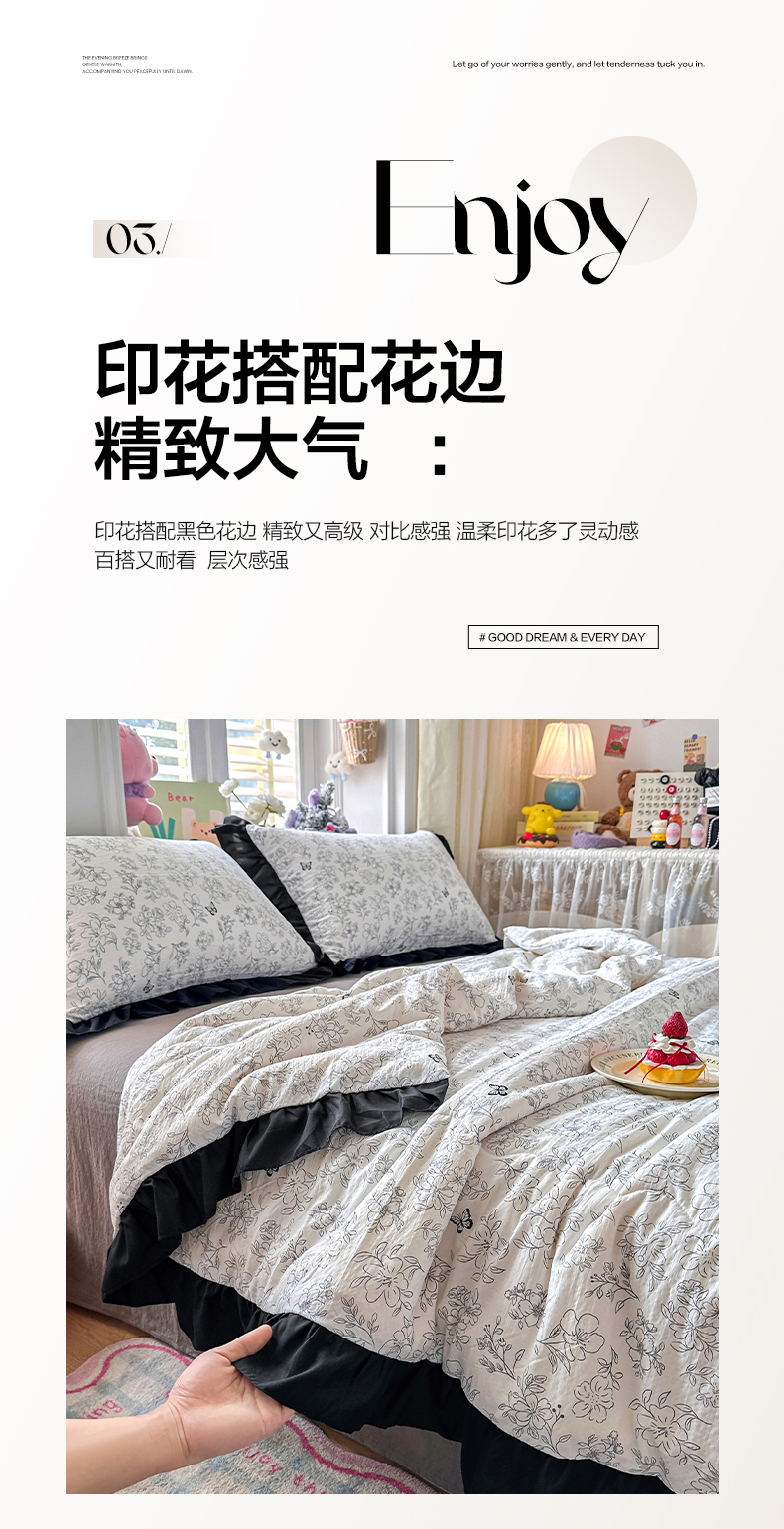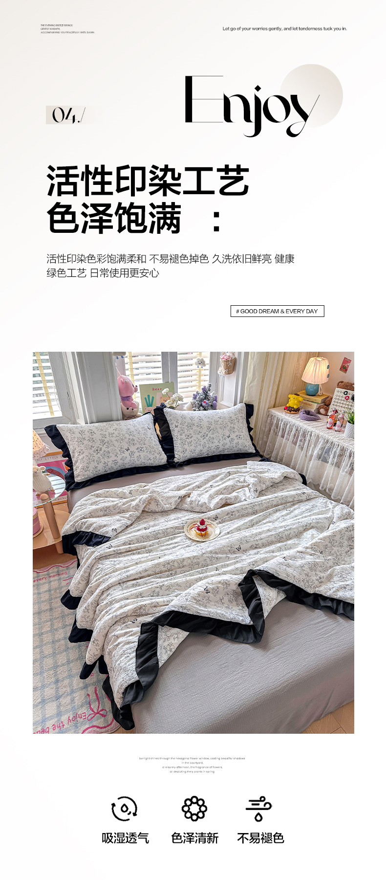 (总)优卡迪家纺馆 2026新款皱皱棉黑花边夏被四件套下载文件包含买家秀