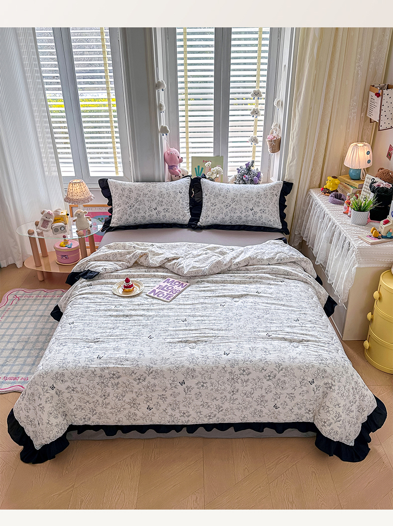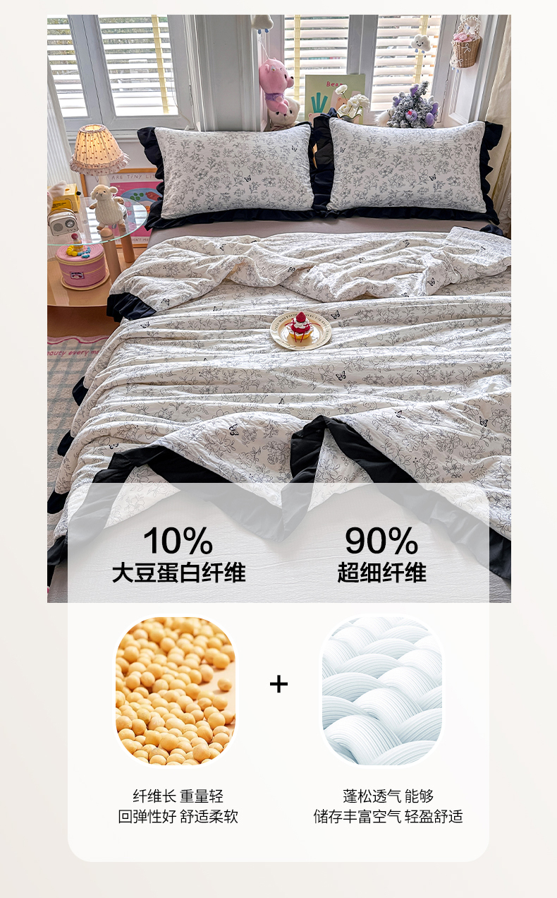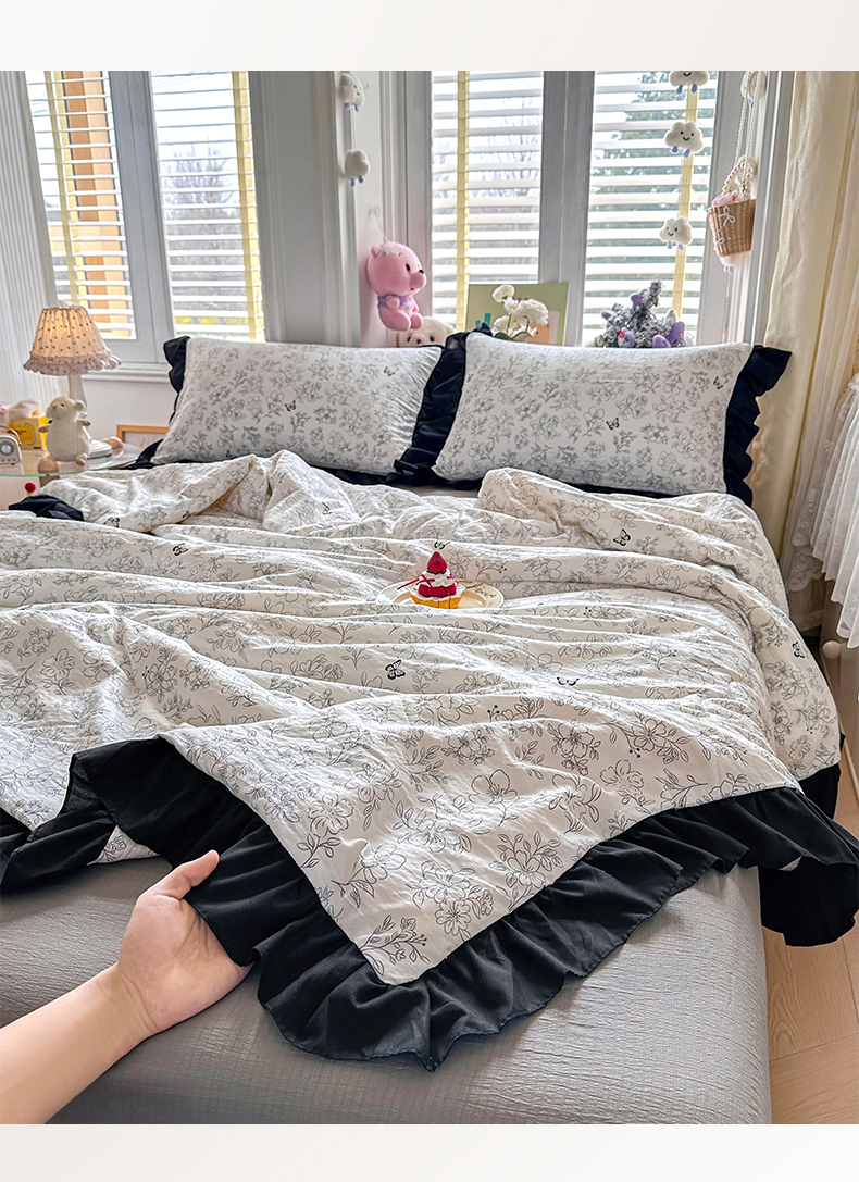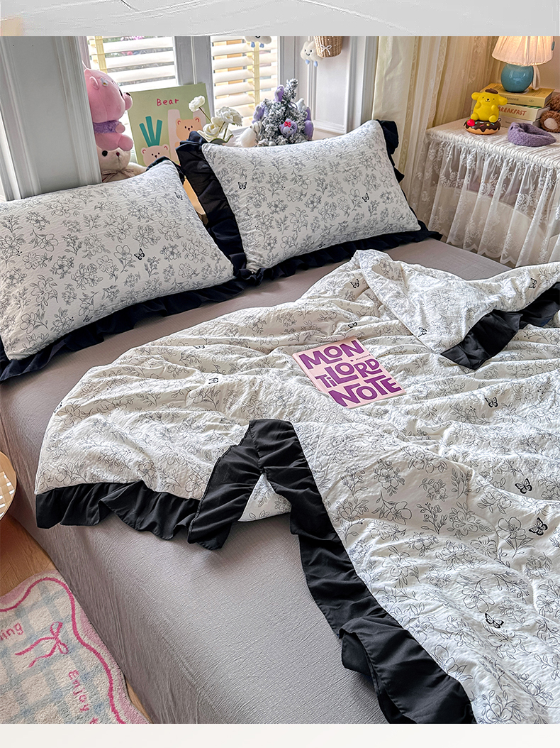 (总)优卡迪家纺馆 2026新款皱皱棉黑花边夏被四件套下载文件包含买家秀