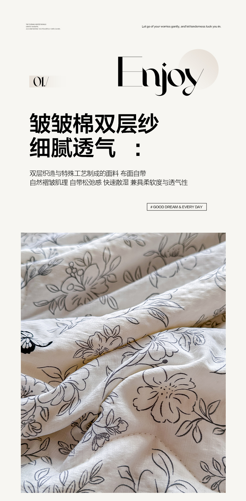 商品名称:(总)优卡迪家纺馆 2026新款皱皱棉黑花边夏被四件套下载文件包含买家秀