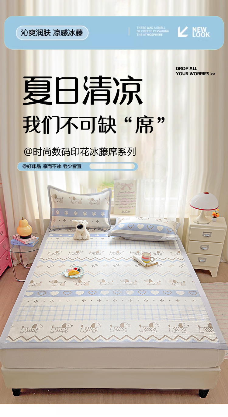 (总)川悦生活 2026新款时尚数码印花冰藤席,布丁小马,春田蜜兔,兰铃花园,果果小熊,芙娜小花,费尔岛小狗,快乐小喵岛,布达春语,凉夏奶熊,莓果花园,喵小花,奶香小喵,南岸小狗,甜梦星光,小狗兜兜,小狗运动会,小兔叶香,星塔小熊,星月西高地,幸运西高地,幸运星仔-蓝,熊仔小歪,叶雨-绿水,叶雨-银沐