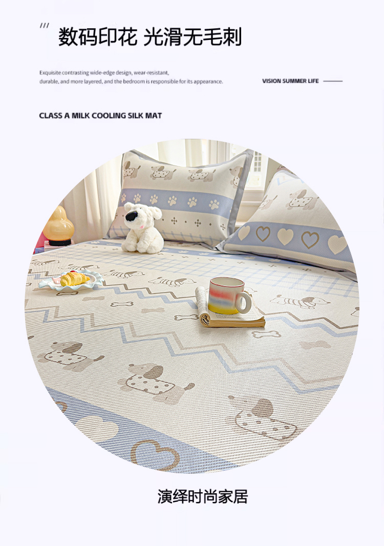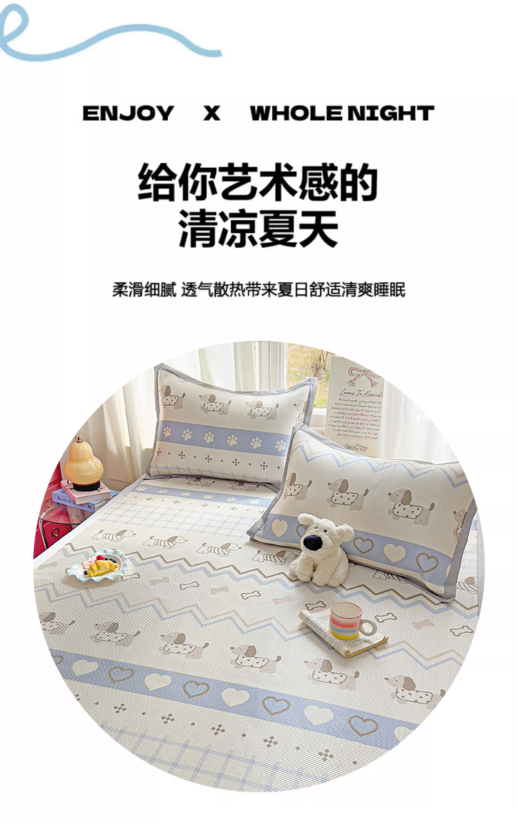 商品名称:川悦生活 2026新款时尚数码印花冰藤席 费尔岛小狗