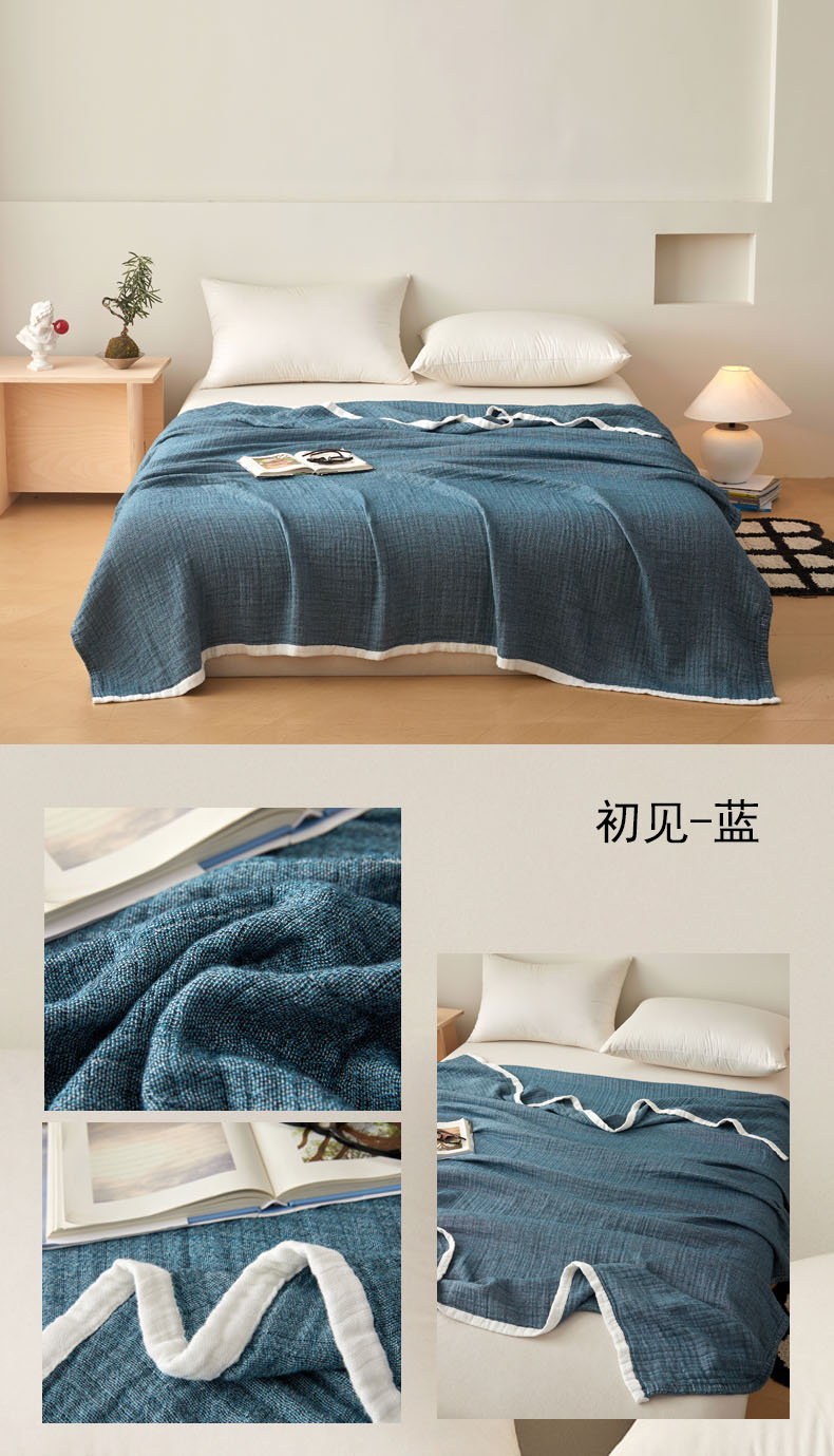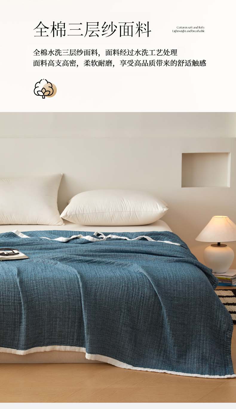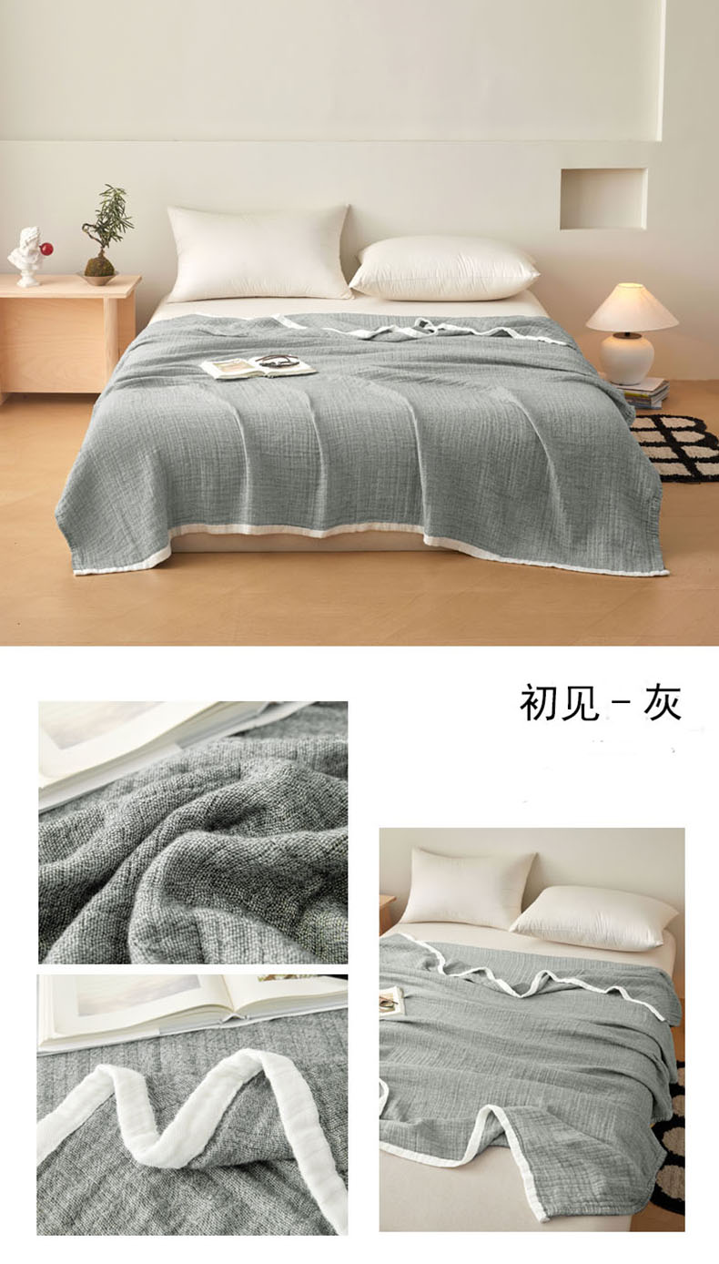 (总)卡奥家纺 2026新款全棉水洗三层纱盖毯-初见,初见-灰,初见-咖,初见-蓝