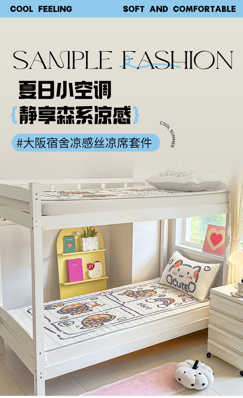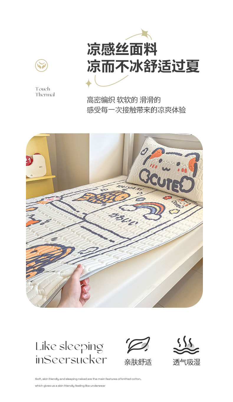 当前位置: 91家纺网 > 商品网购 > 床上用品 > 凉席 > 冰丝席 > 川悦生活 2026新款大版宿舍凉感丝学生床凉席三件套 元气小鱼
