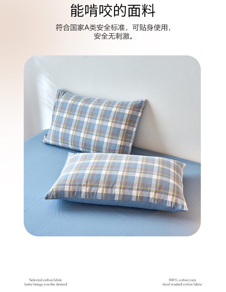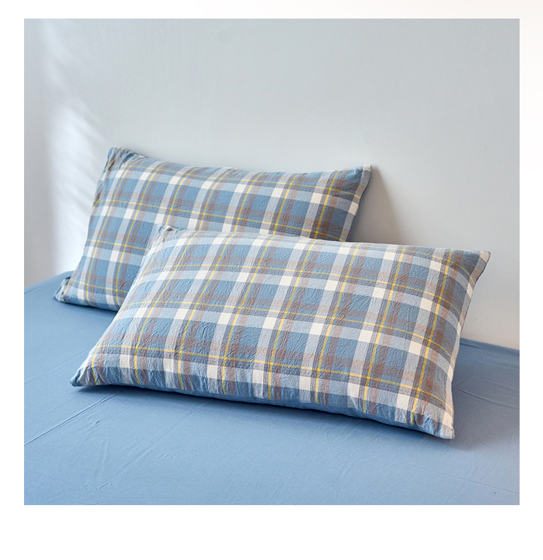 春皖家纺 2026春夏新款全棉水洗棉单枕套枕套单件单品枕套 素雅-蓝格