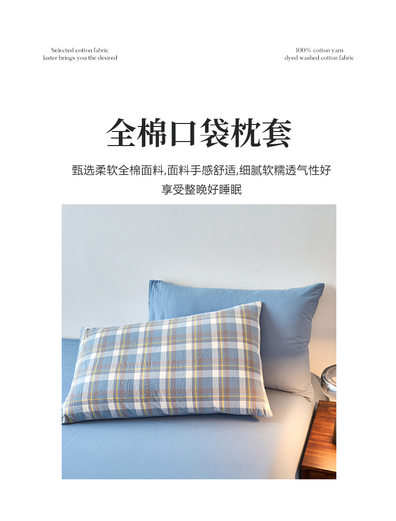 商品名称:春皖家纺 2026春夏新款全棉水洗棉单枕套枕套单件单品枕套 素雅-蓝格