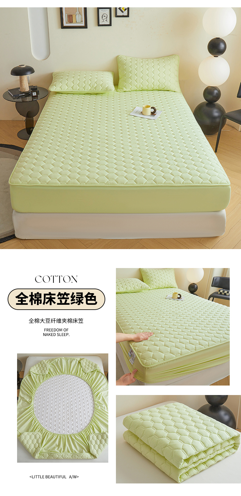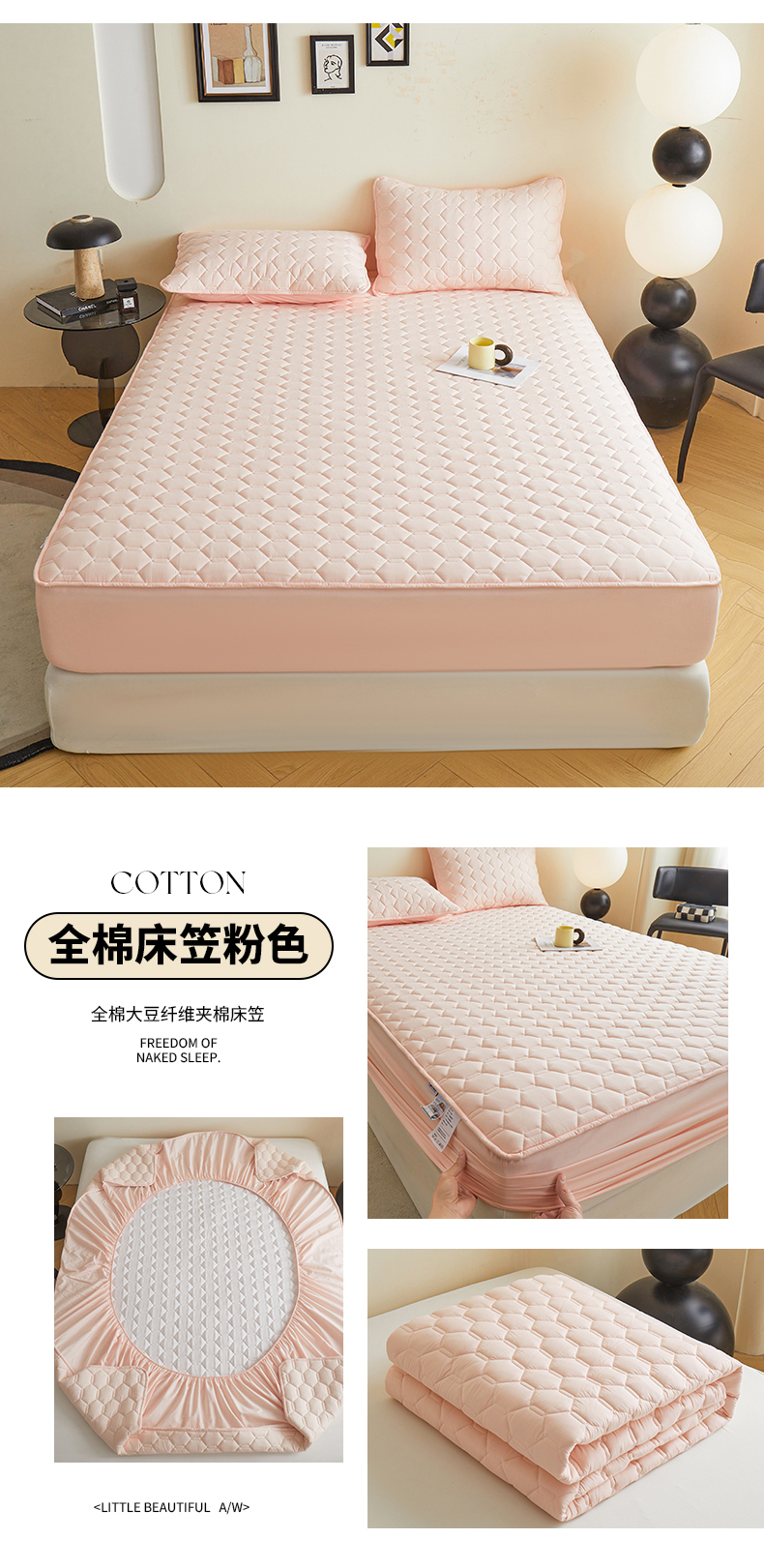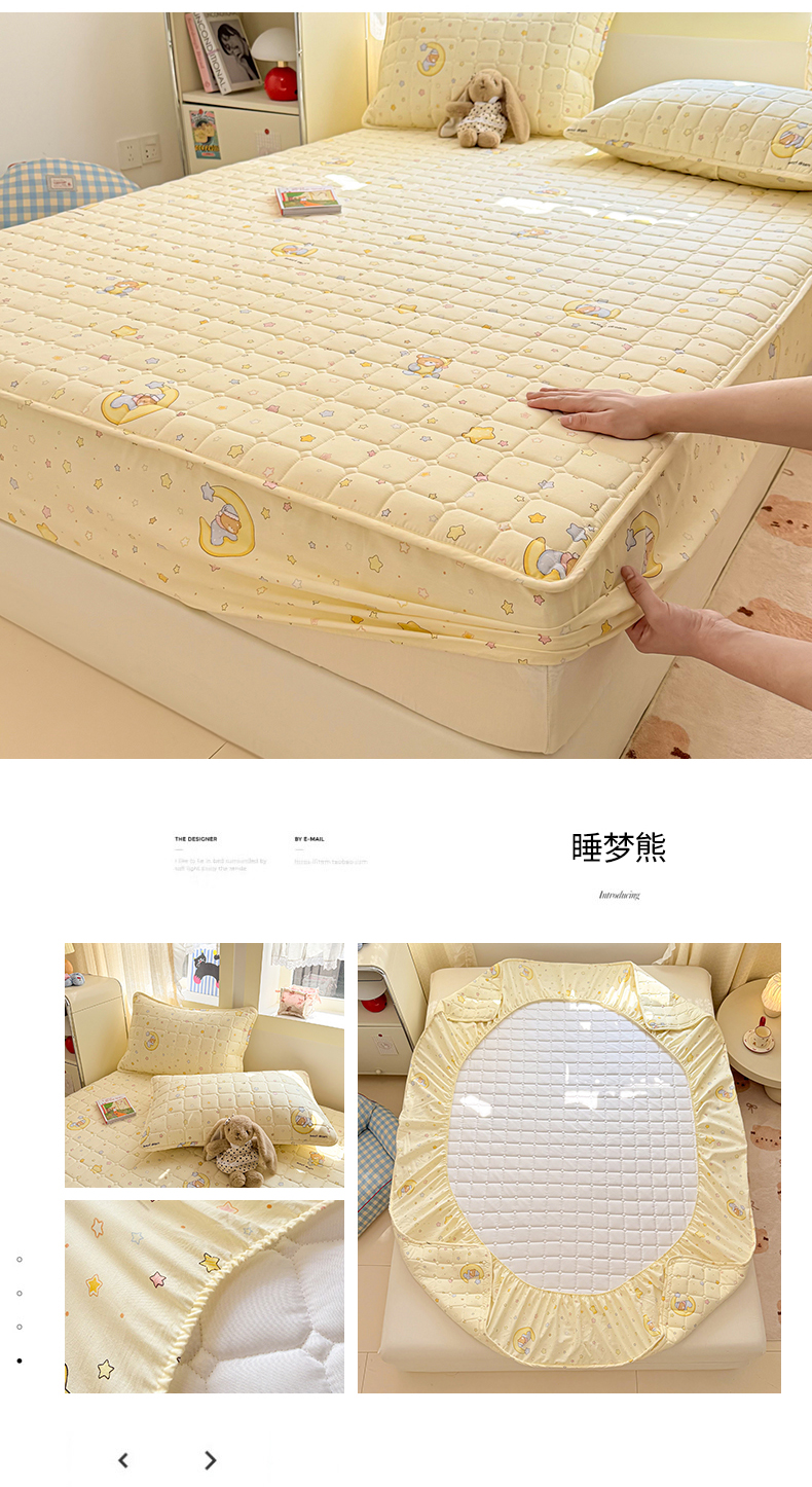 (总)雅萱家纺 2026新款全棉大豆夹棉床笠单品床笠床笠单件,全棉床笠白色,全棉床笠粉色,全棉床笠灰蓝色,全棉床笠灰色,全棉床笠绿色,全棉床笠驼色,洛克庄园红,睡梦熊,兔彼得,心意满满,星星猫