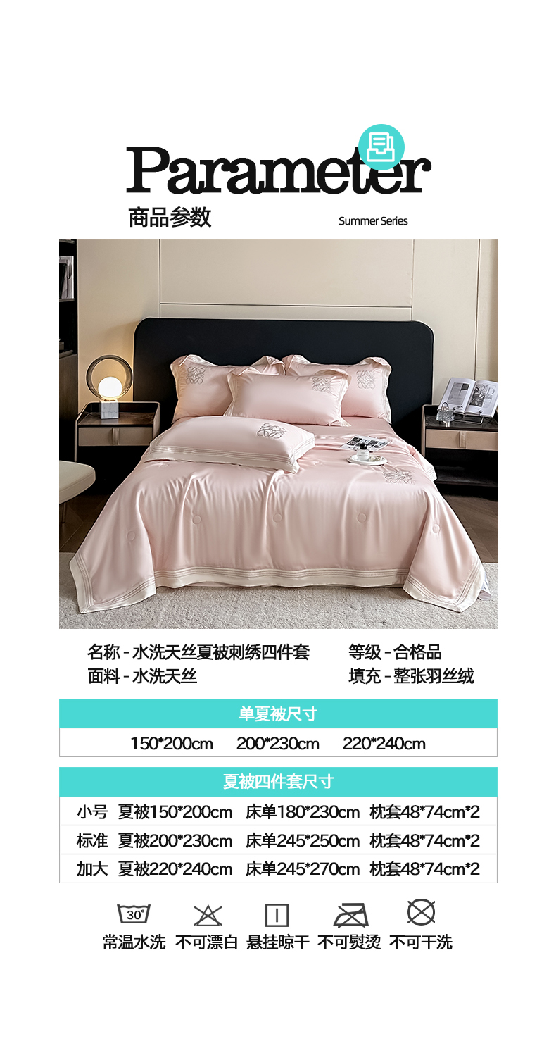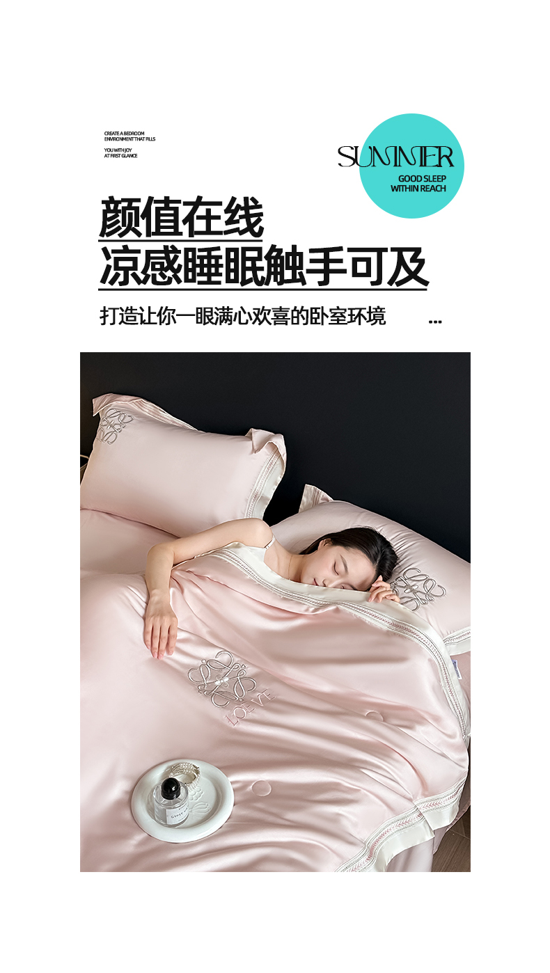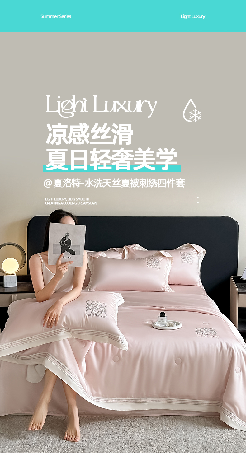 当前位置: 91家纺网 > 商品网购 > 床品套件 > 四件套 > 水洗真丝四件套 > 置顶家纺 2026新款水洗天丝夏被刺绣四件套-夏洛特 夏洛特-优雅粉