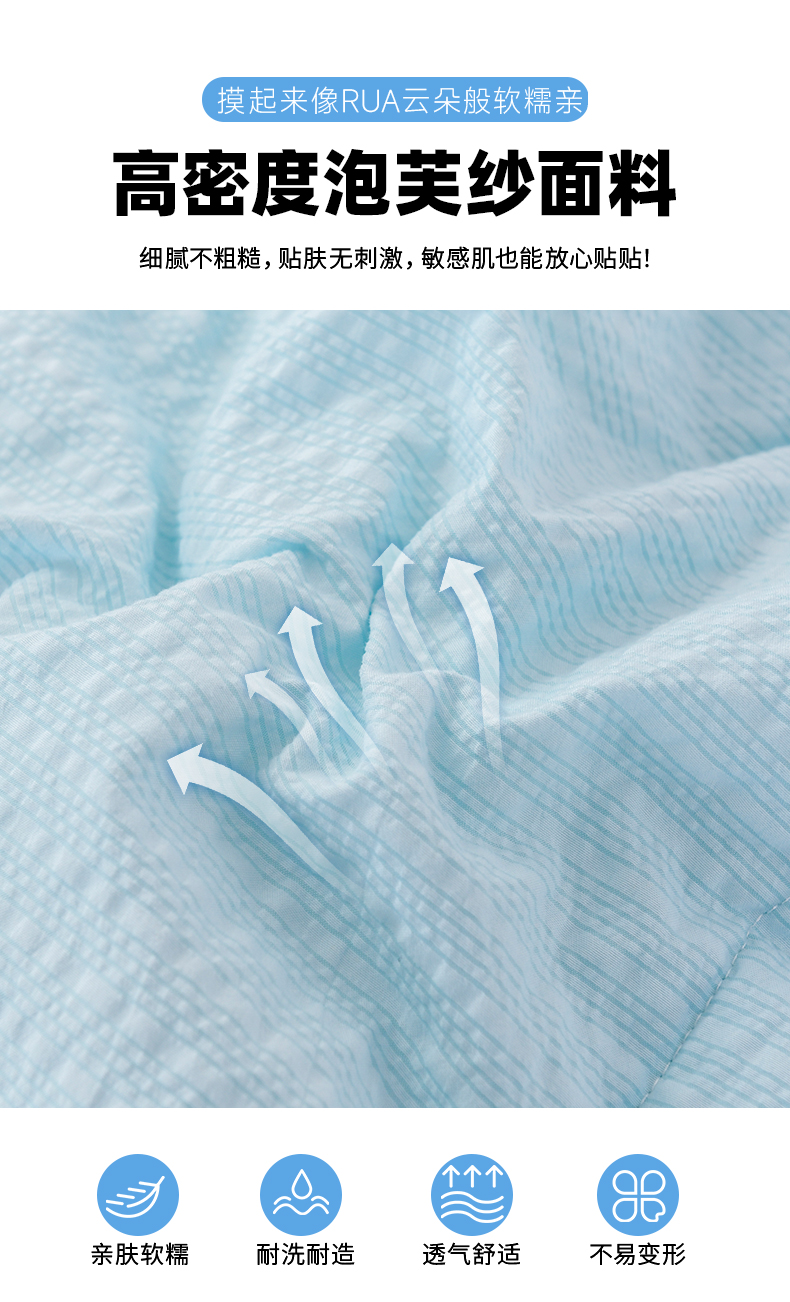 (总)恋绒家纺 2026春夏新款泡芙纱双层纱泡泡提花皱皱纱夏被夏凉被空调被,豆沙,米白色,浅粉,浅灰,浅蓝色,浅绿色