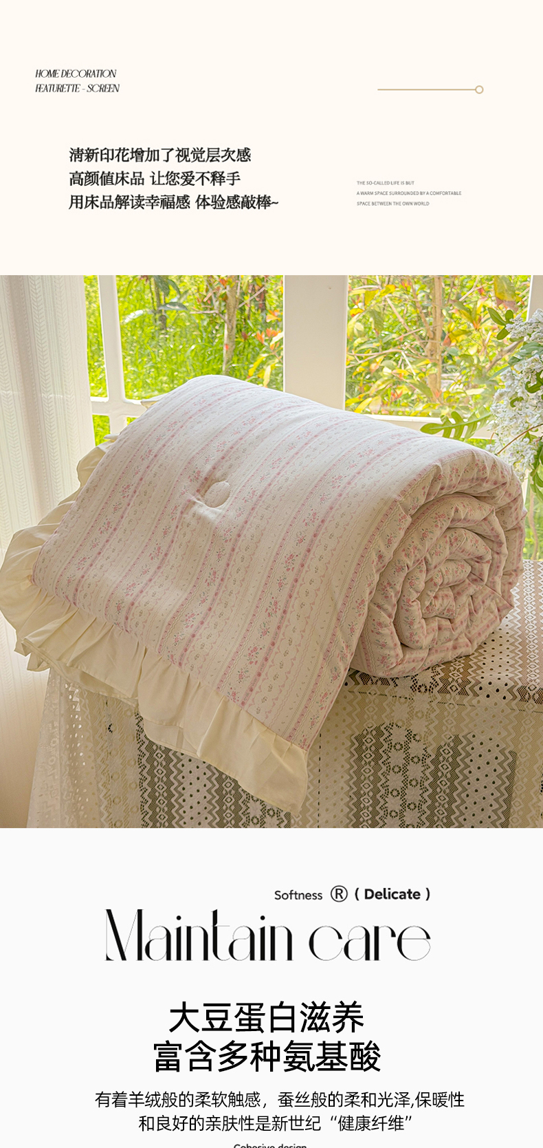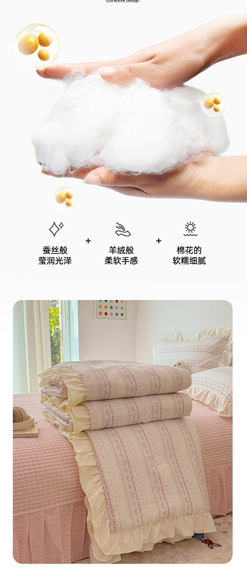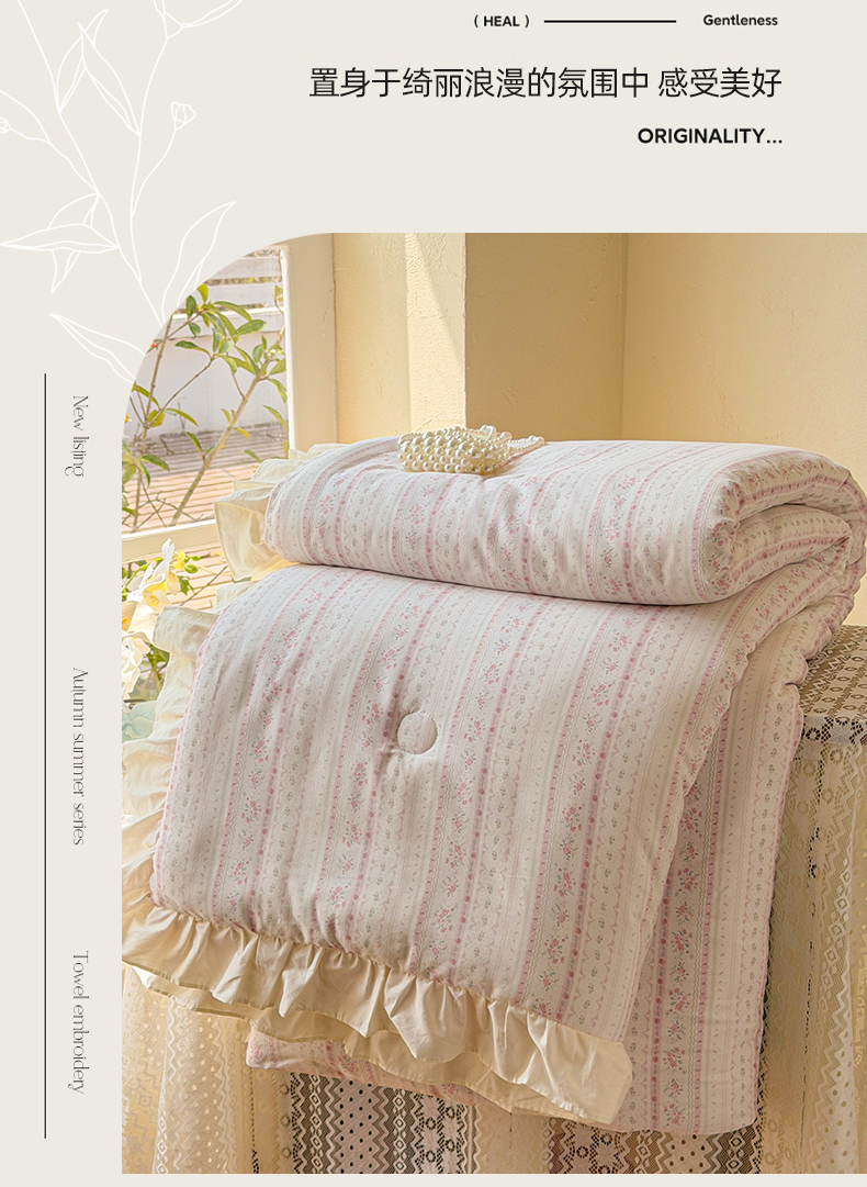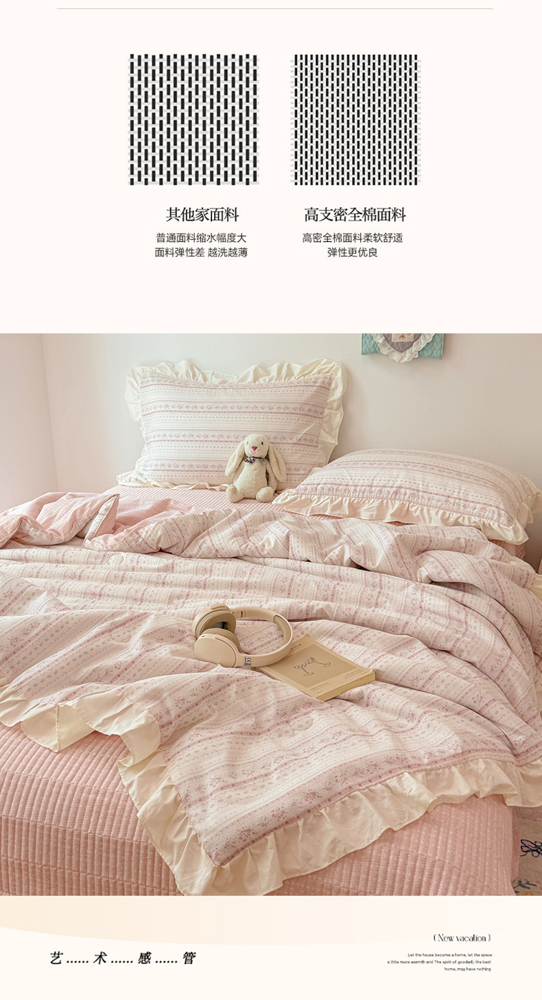 当前位置: 91家纺网 > 商品网购 > 床品套件 > 四件套 > 夏被四件套 > 简宜家居(朝初家纺) 2026新款全棉花边夏被全棉床盖夏被四件套 素条花-粉