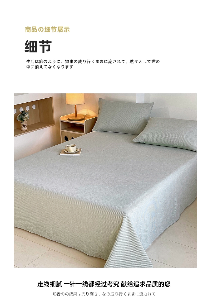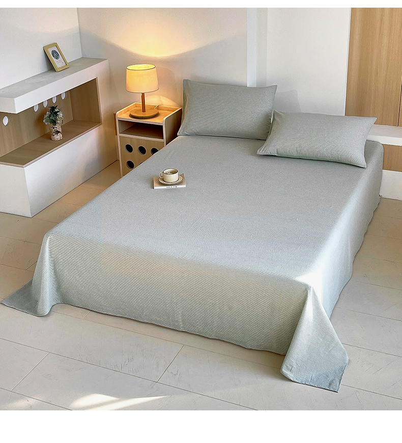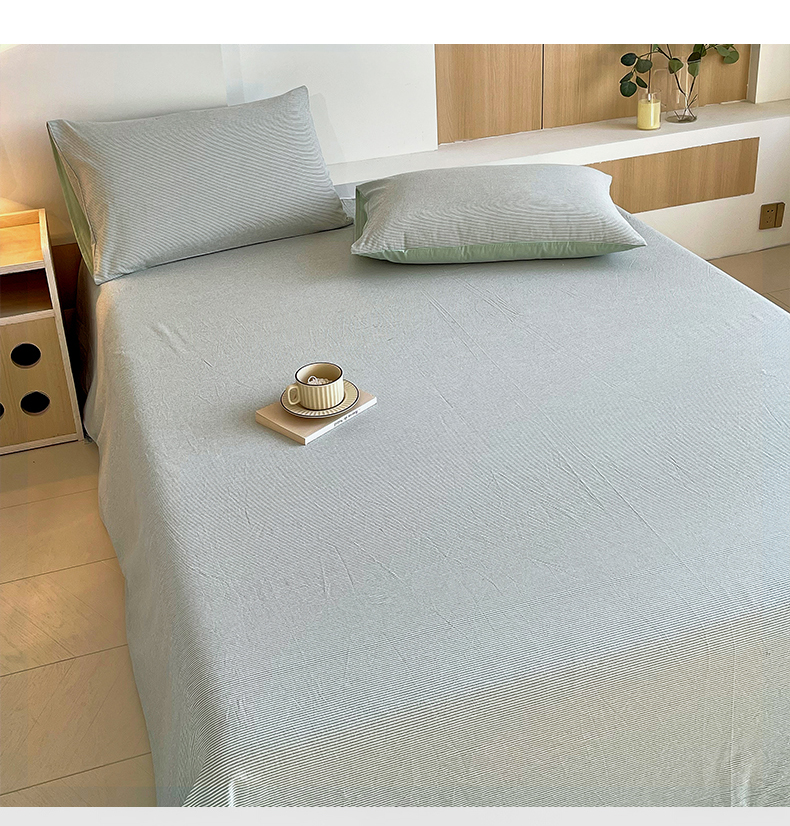 春皖家纺 2026春夏新款全棉纯棉水洗棉单品系列床单单件床单单品-A版单床单 细条绿
