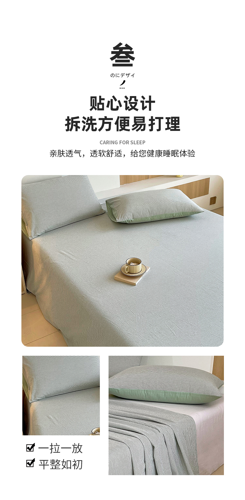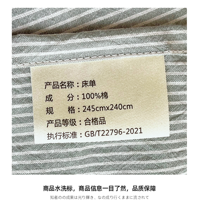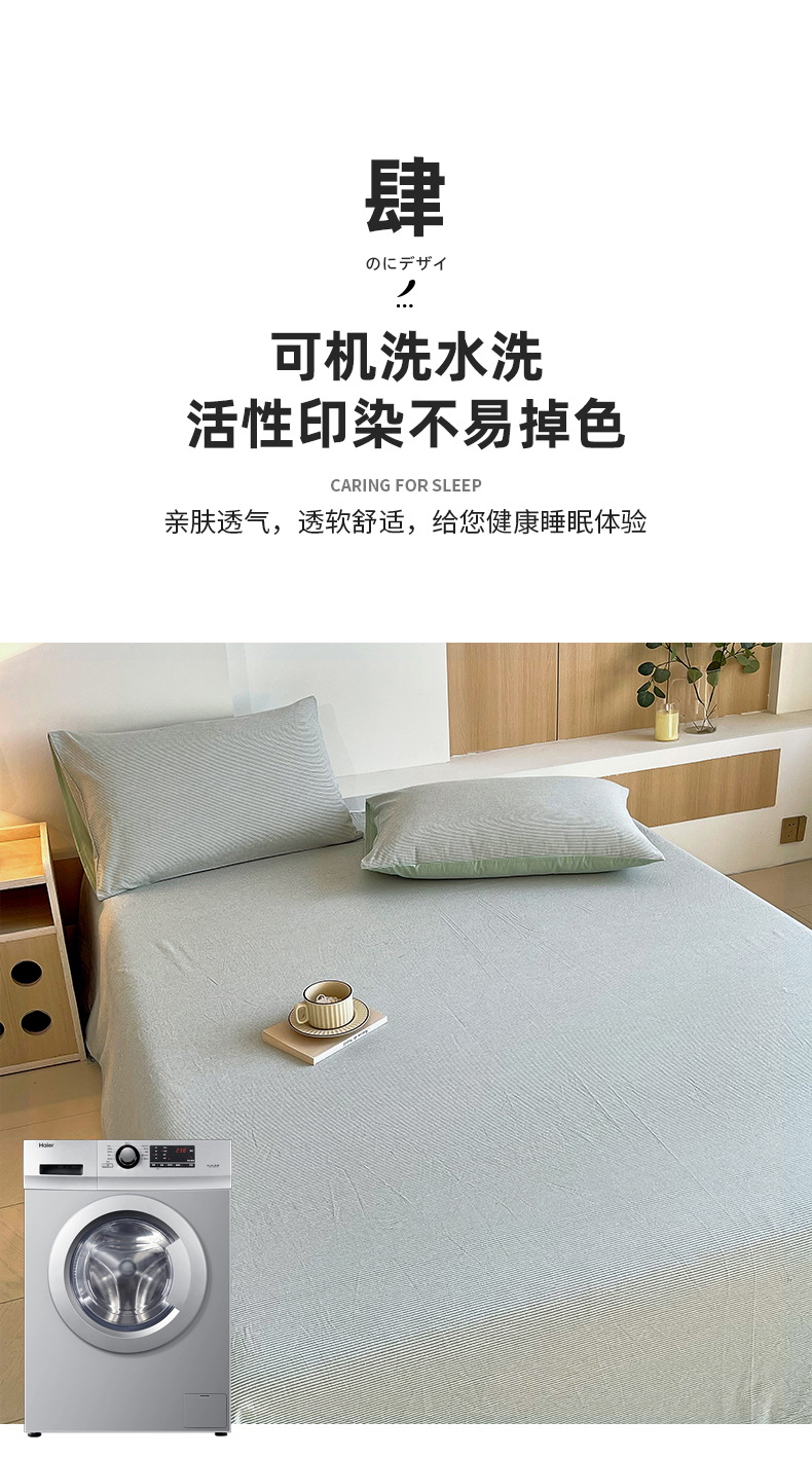 商品名称:春皖家纺 2026春夏新款全棉纯棉水洗棉单品系列床单单件床单单品-A版单床单 细条绿
