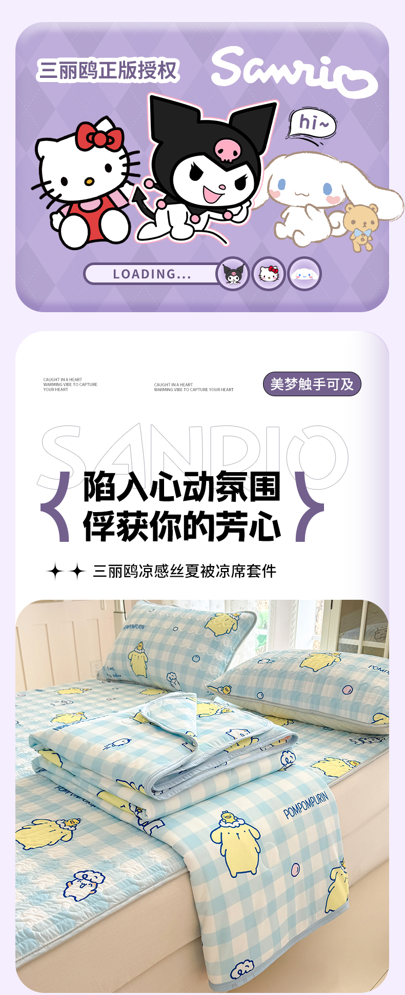 • 91家纺网 家纺一手货源 找家纺 (总)博雅 2026新款三丽鸥A类仿锦氨组合小冰皮夏被夏凉被空调被凉席席子,小版-甜品格美乐蒂KT,小版-爱心KT,小版-点点玉桂狗,小版-蝴蝶结KT,小版-开心库洛米,小版-可爱KT,小版-蓝格布丁狗,小版-蓝色蝴蝶结KT,小版-甜品玉桂狗,小版-甜筒KT-白,小版-甜筒KT-粉,小版-小兔美乐蒂,小版-小熊苹果KT,小版-音乐帕恰狗