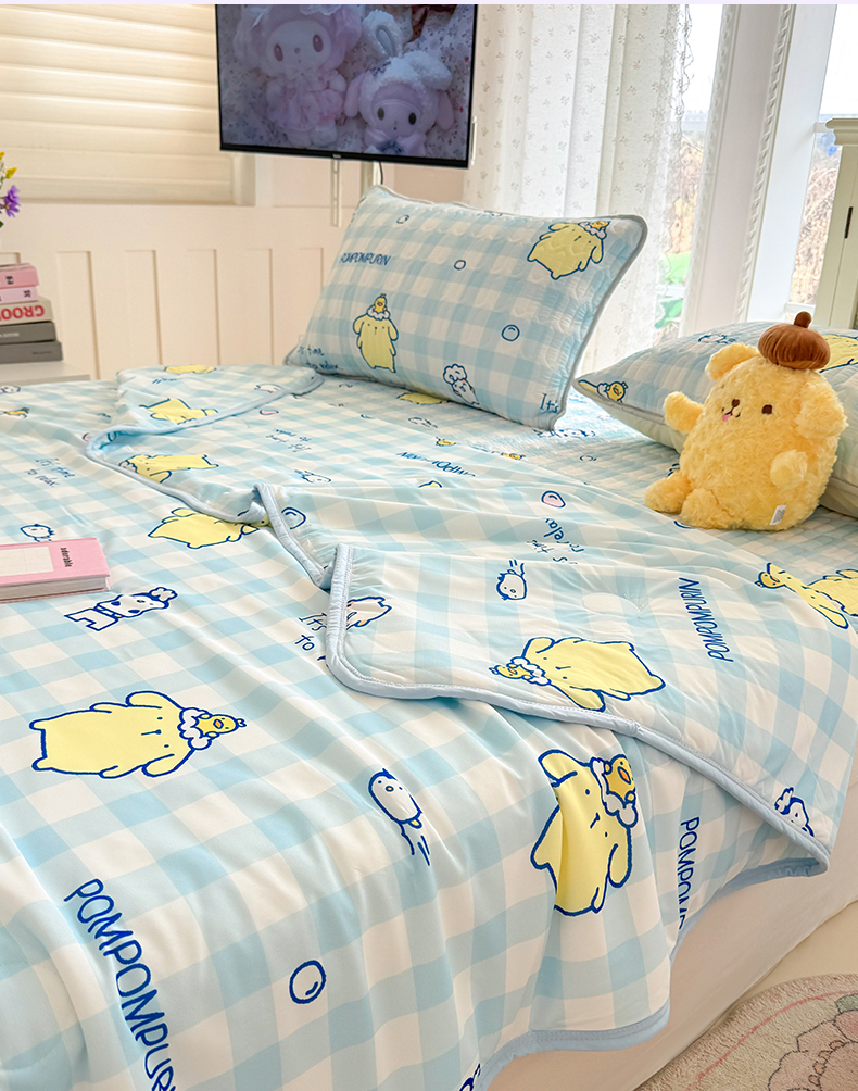 • 91家纺网 家纺一手货源 找家纺 博雅 2026新款三丽鸥A类仿锦氨组合小冰皮夏被夏凉被空调被凉席席子 小版-蓝格布丁狗